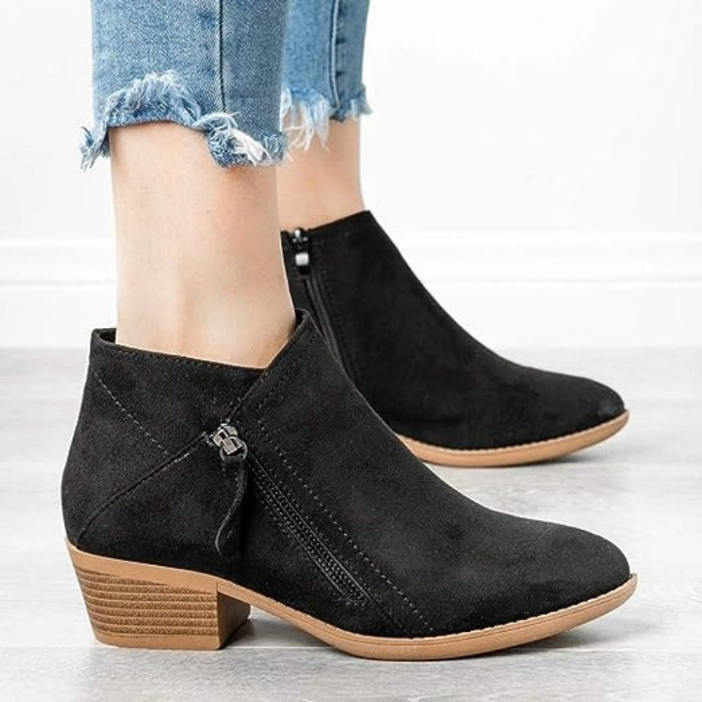 - 1 x Damen-Stiefeletten Aus Wildleder Mit Seitlichem Reißverschluss