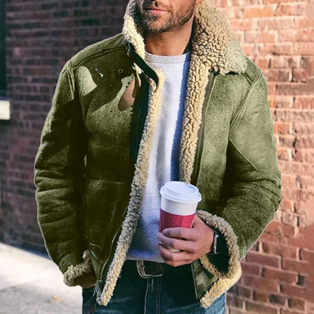 Neue Herren-Jacke Aus Kunstleder Mit Fell Und Integriertem Revers