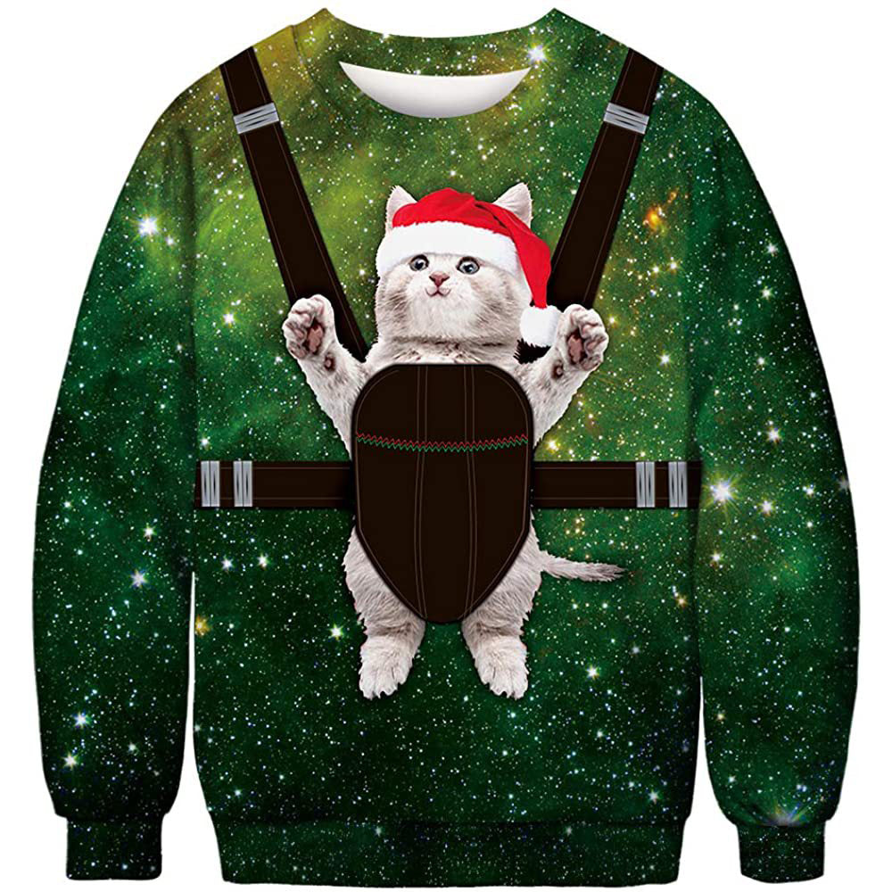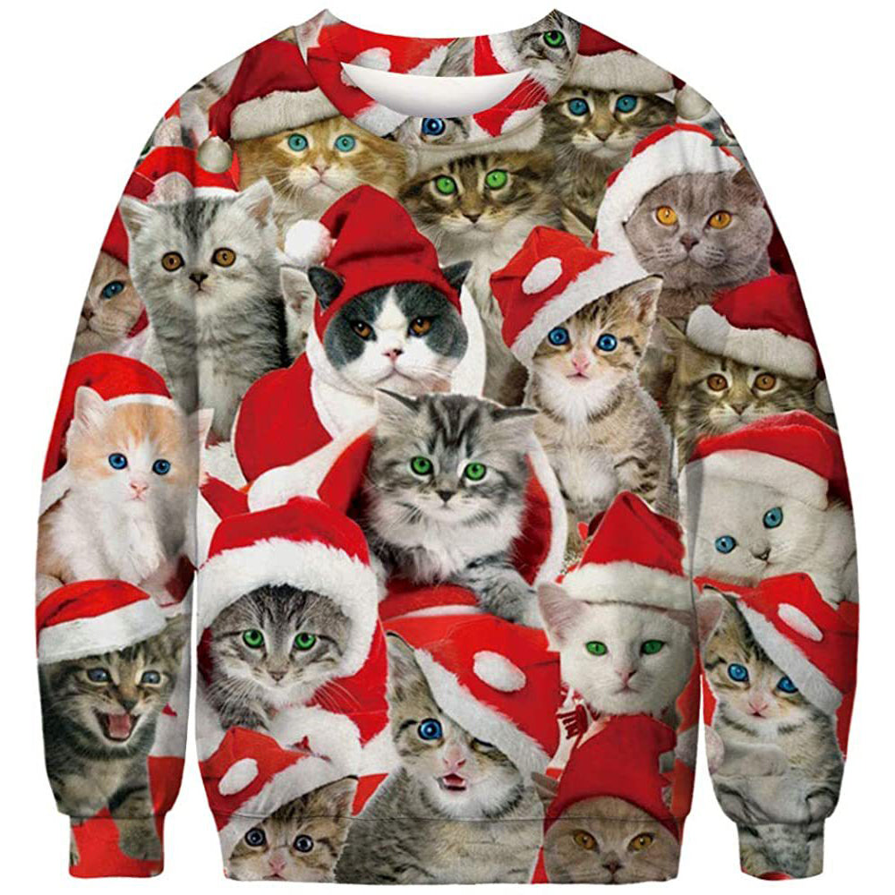 - 1 x Halloween-Haustiere Katzen und -hunde, langärmliges Herren-Sweatshirt mit Rundhalsausschnitt und 3D-Digitaldruck im Vollfarbdruck