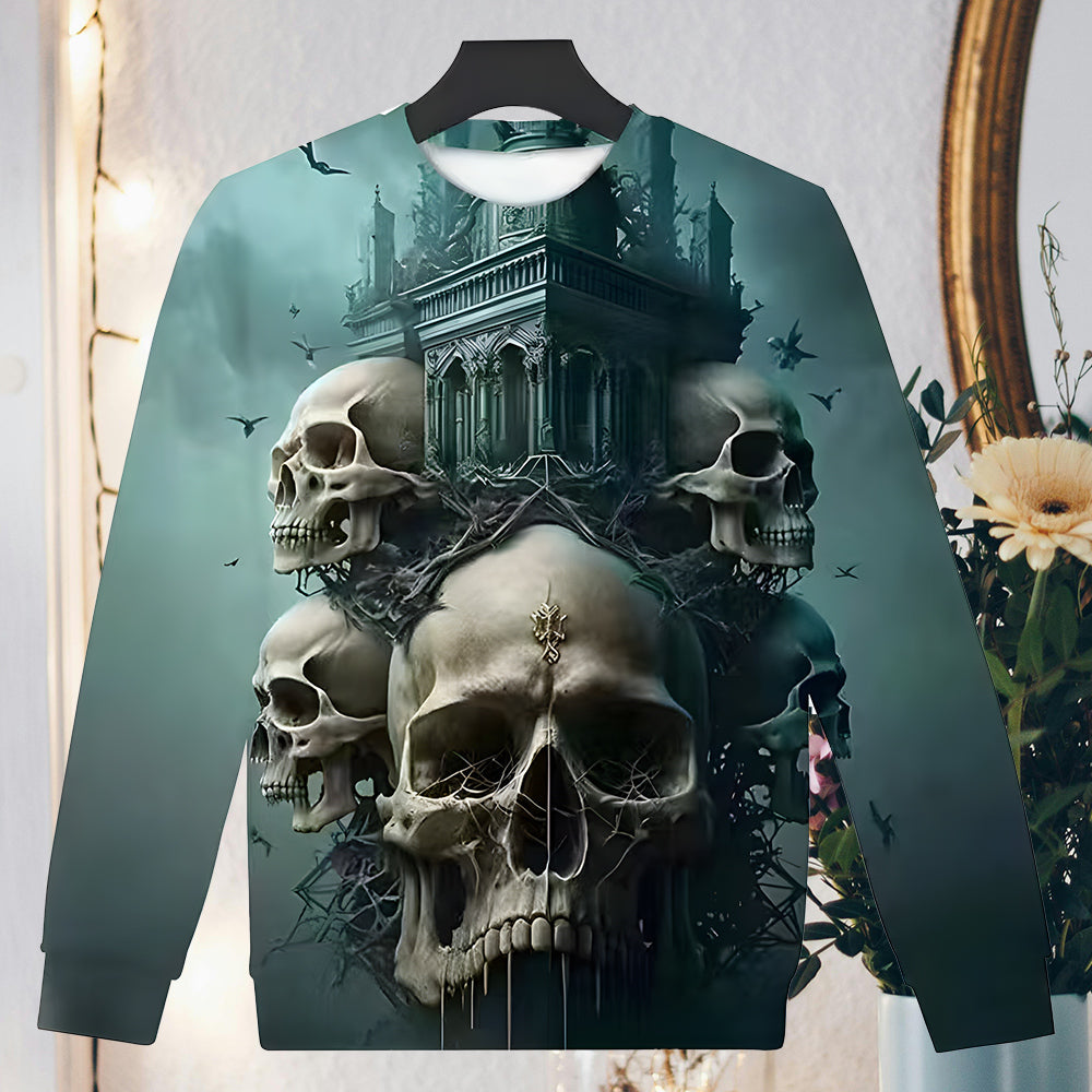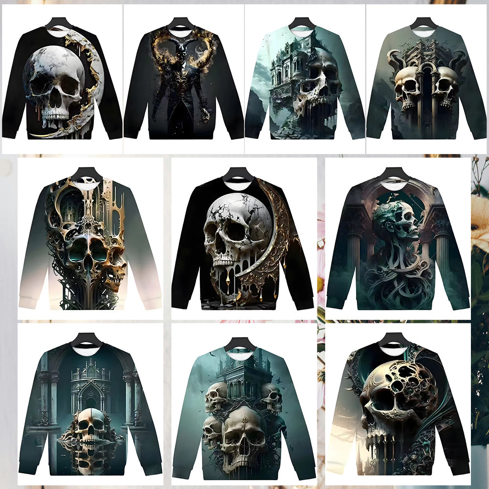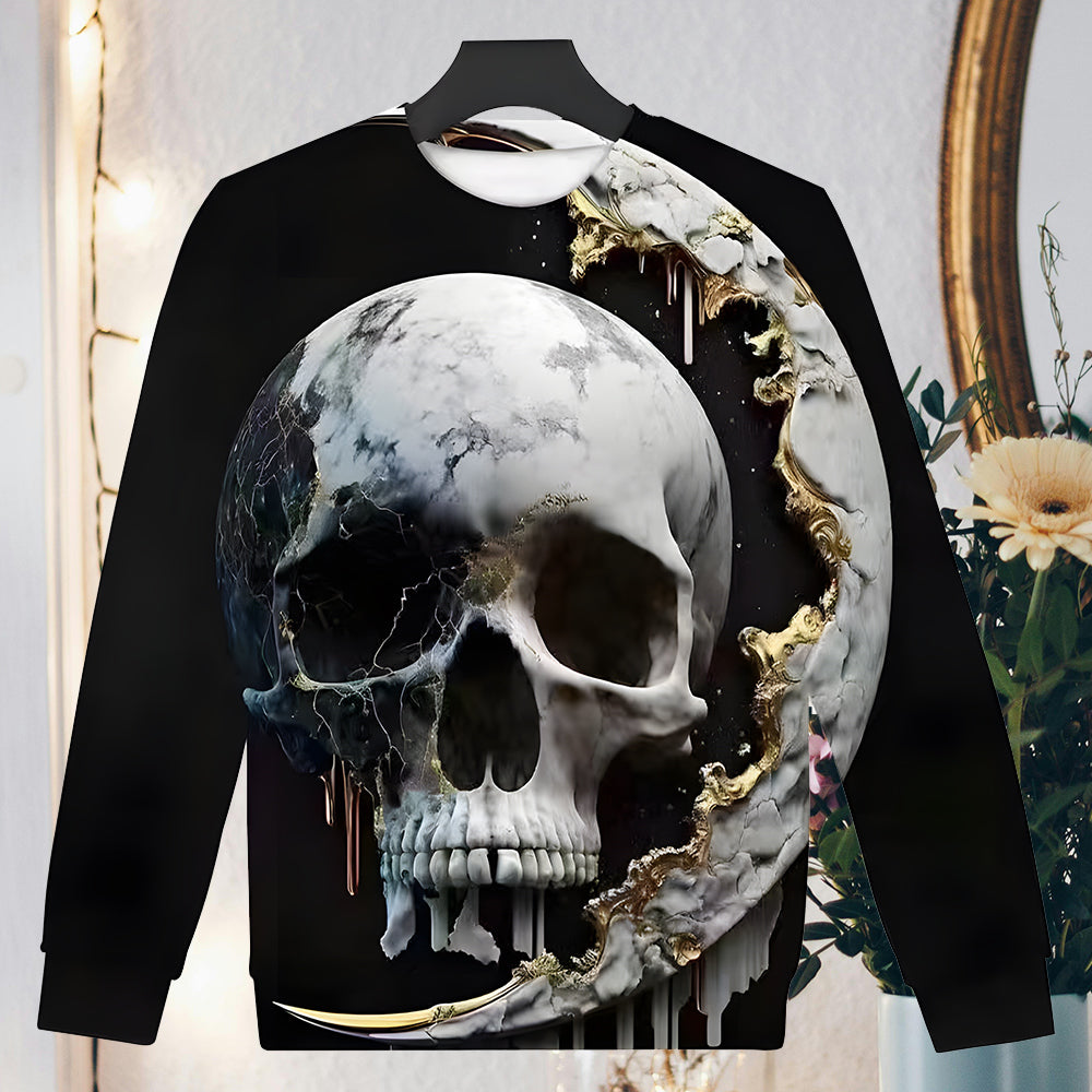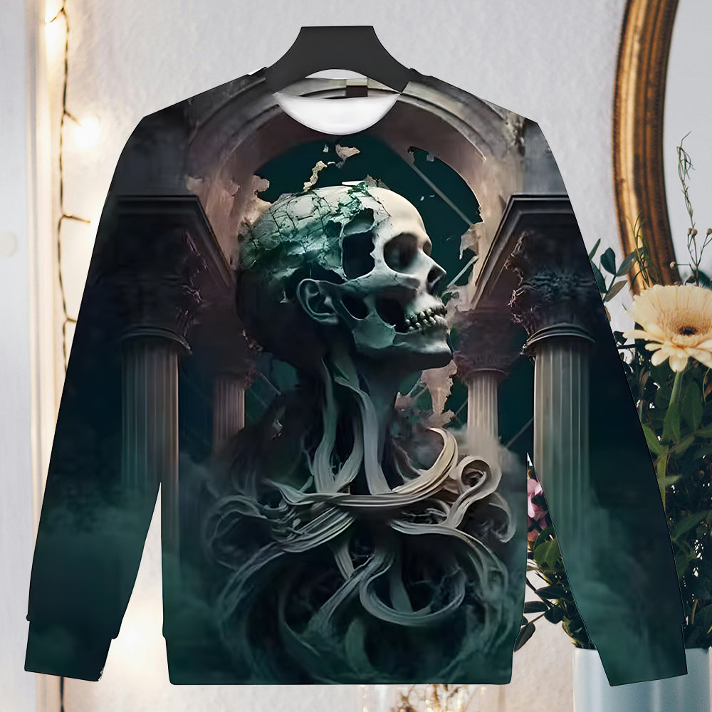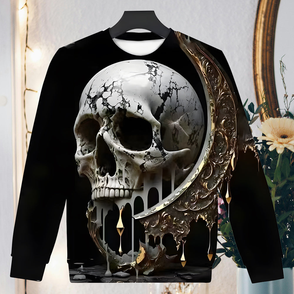 Herren-Sweatshirt Mit Halloween-Schädel-Aufdruck, Langärmelig, Modisch