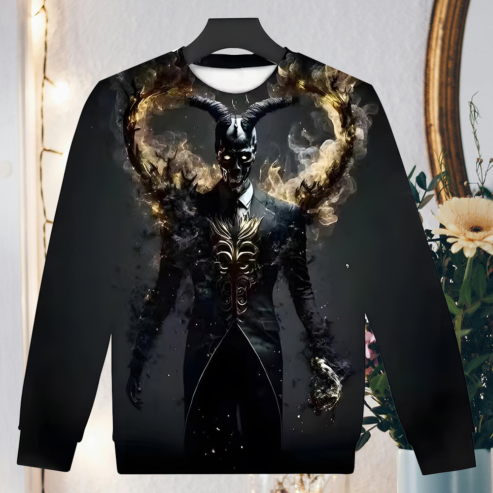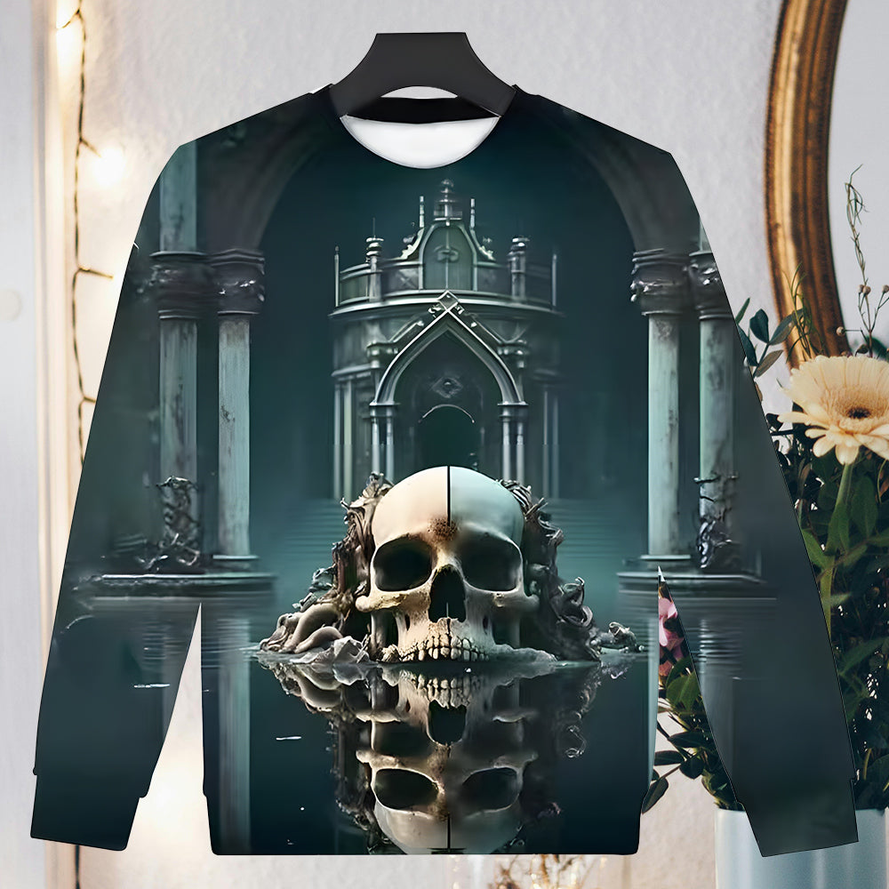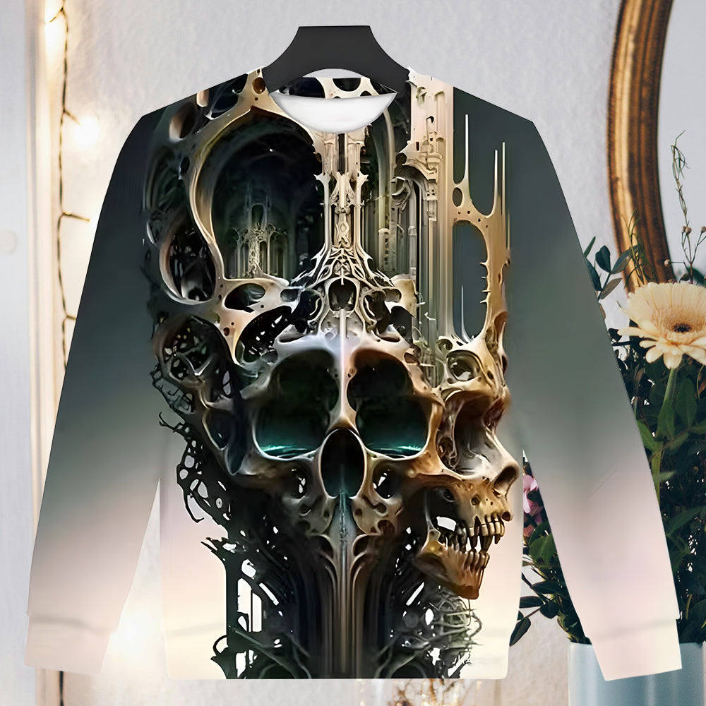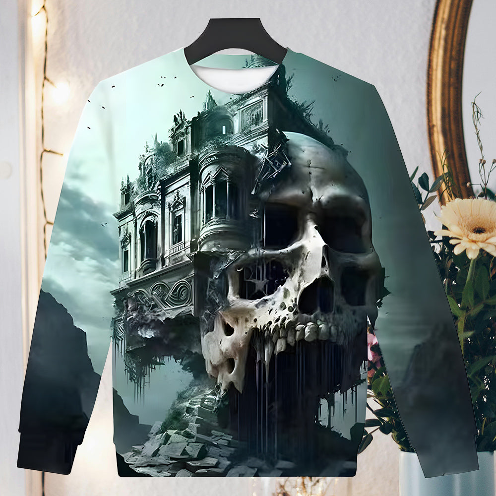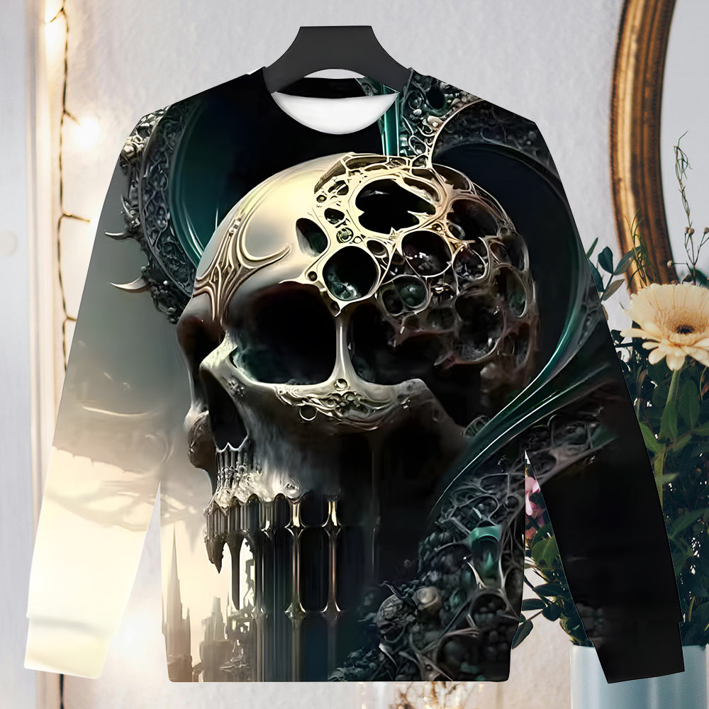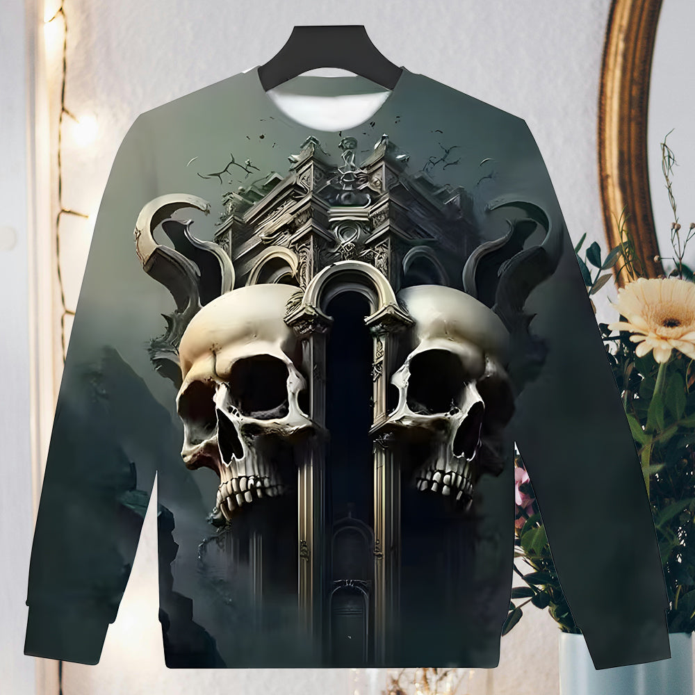 Herren-Sweatshirt Mit Halloween-Schädel-Aufdruck, Langärmelig, Modisch