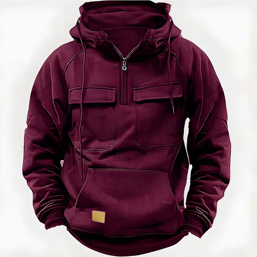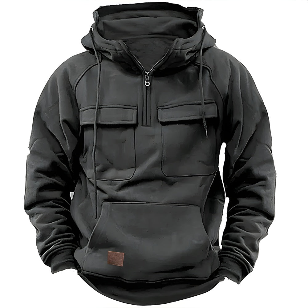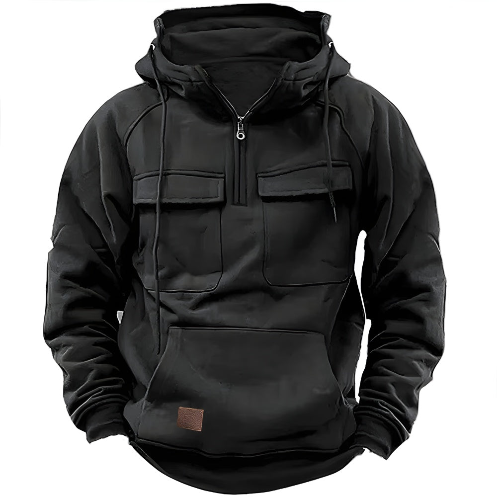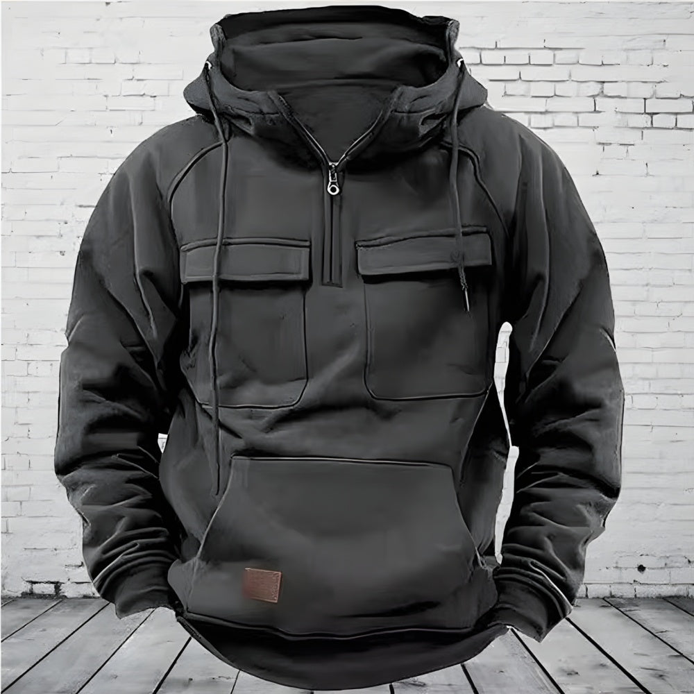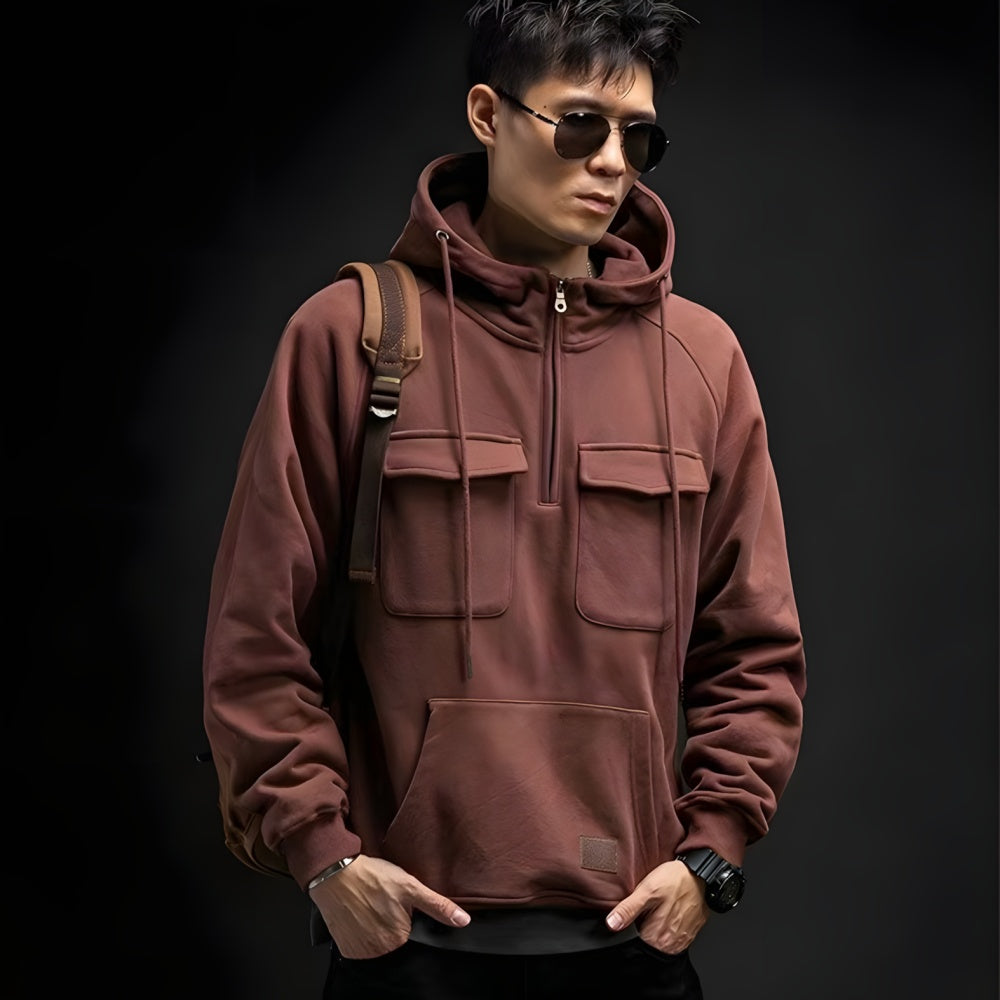 - 1 x Kapuzensweatshirt Mit Viertelreißverschluss Und Mehreren Taschen