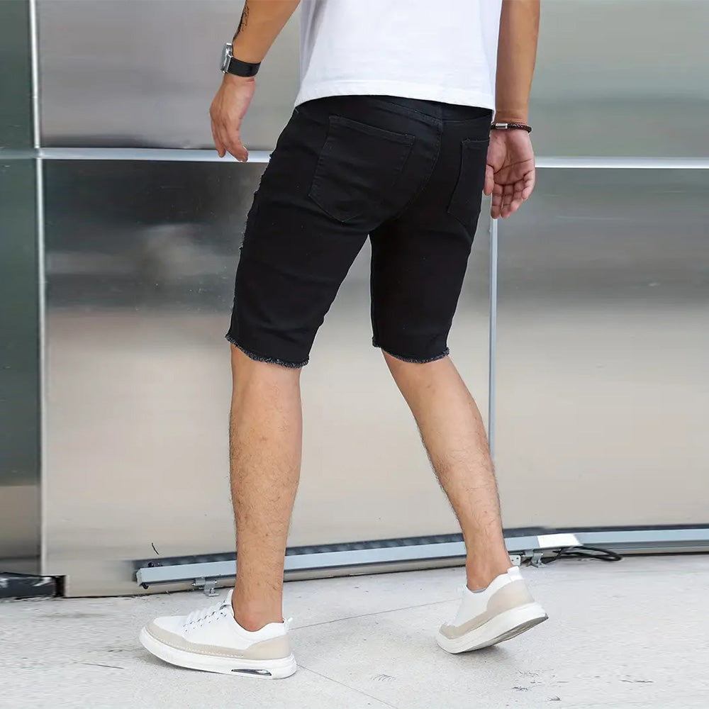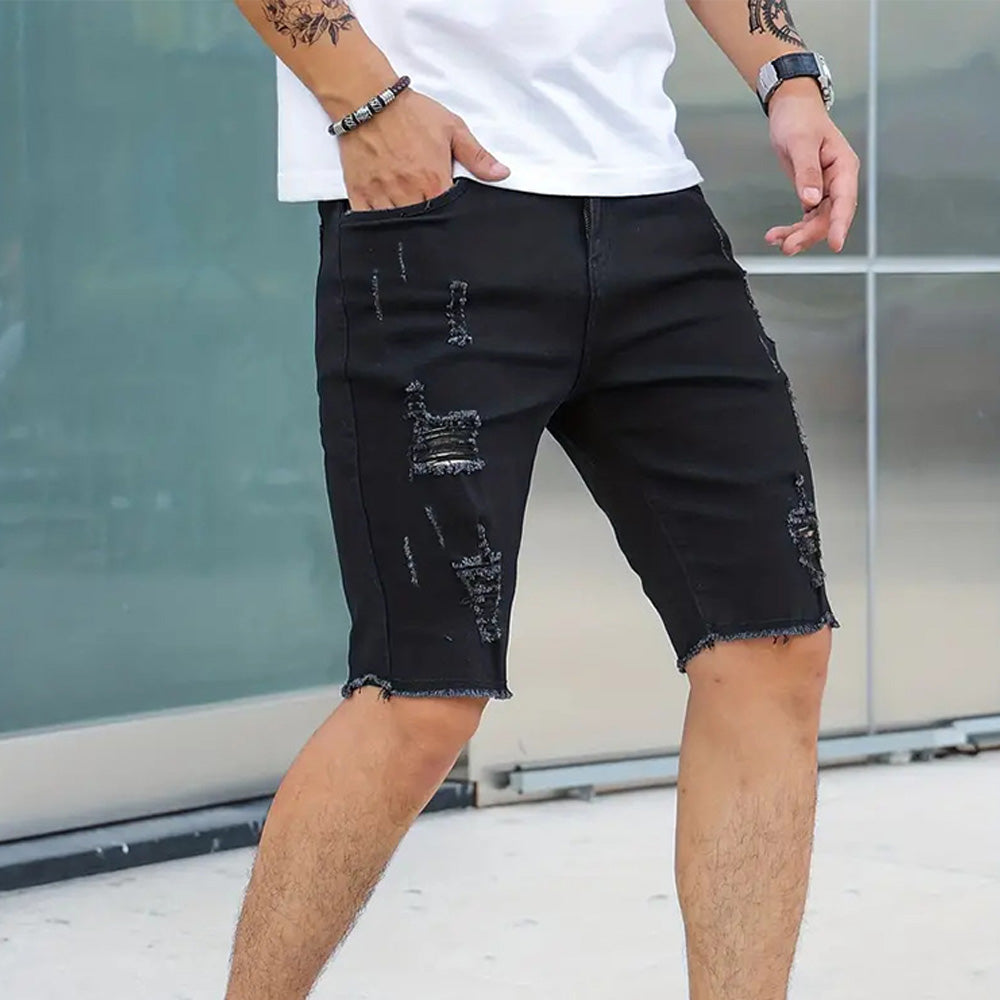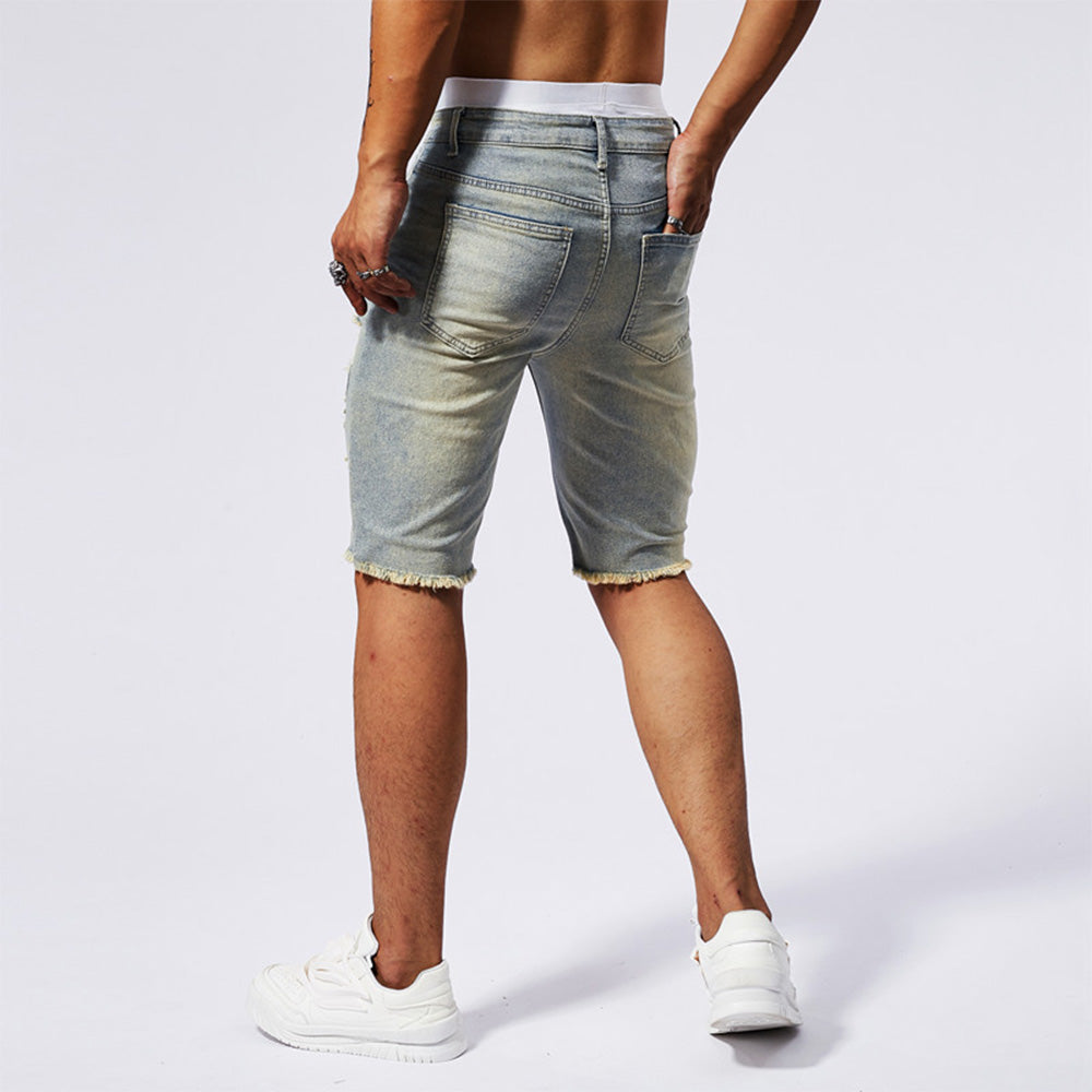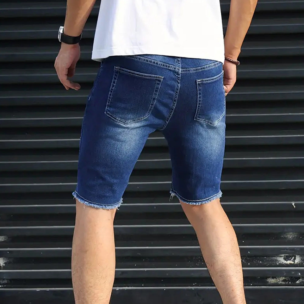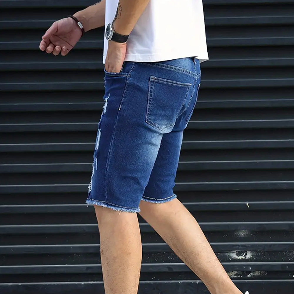 Sommer Herren Slim Fit Denim Shorts 5 Punkt Zerrissen