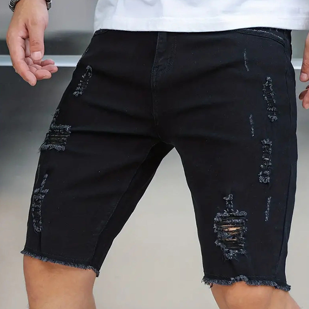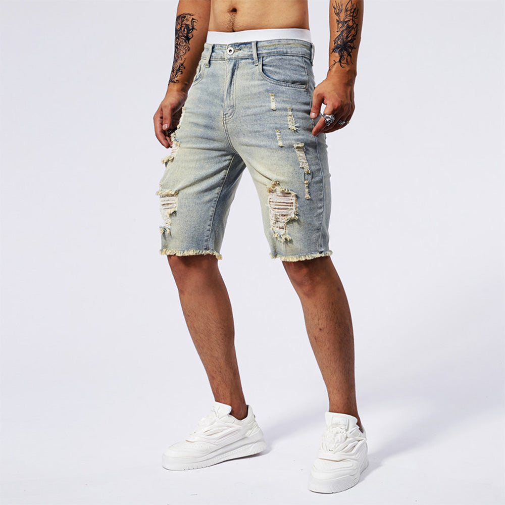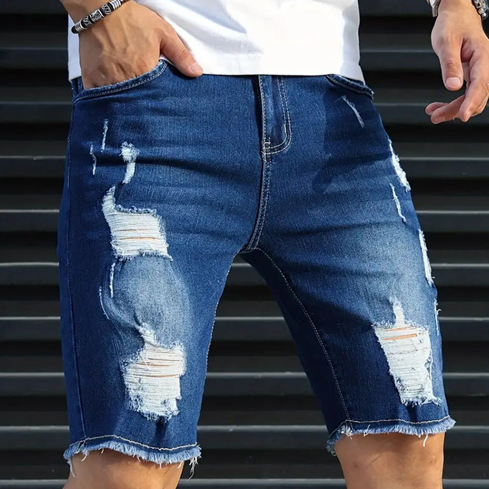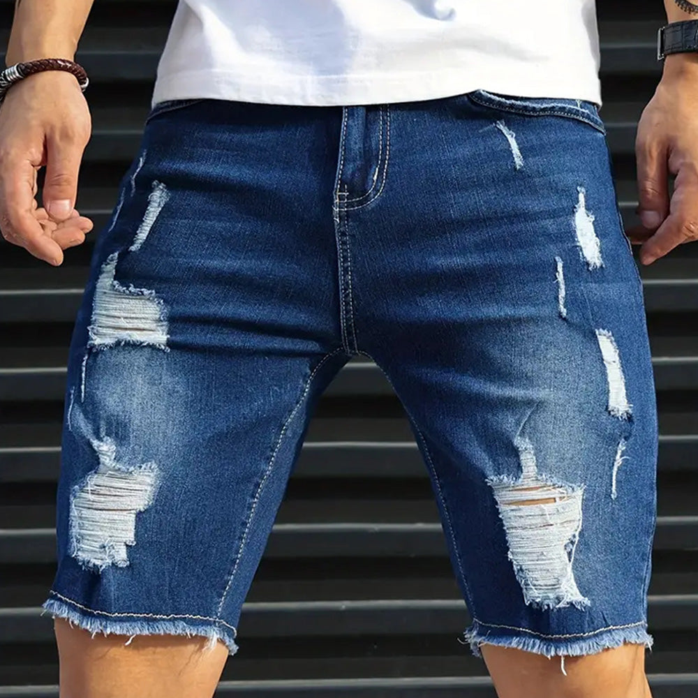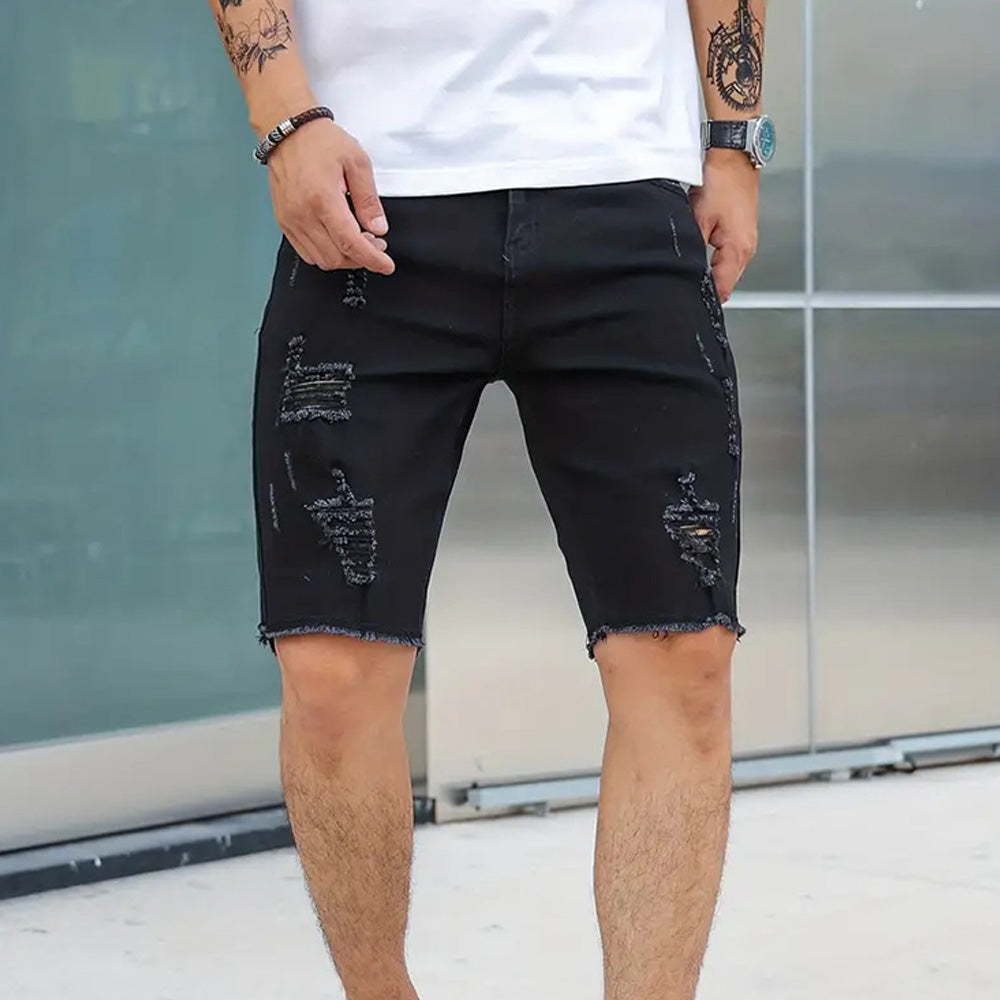 Sommer Herren Slim Fit Denim Shorts 5 Punkt Zerrissen