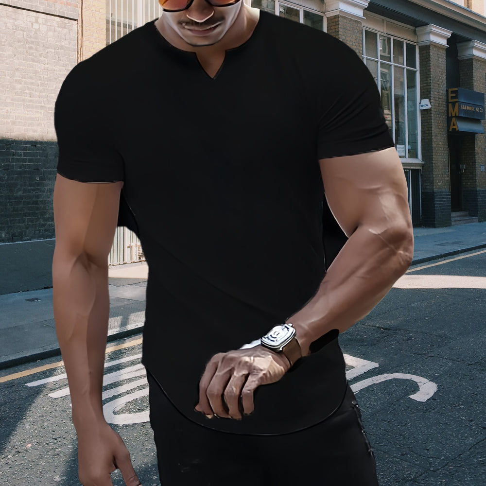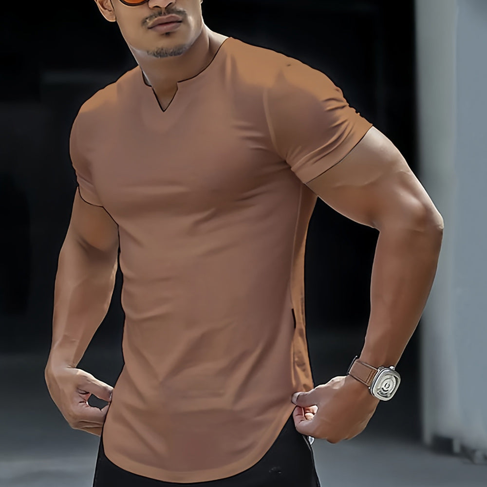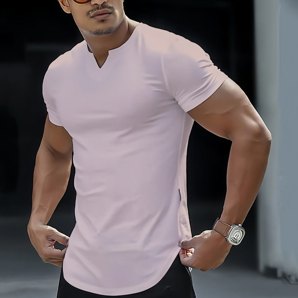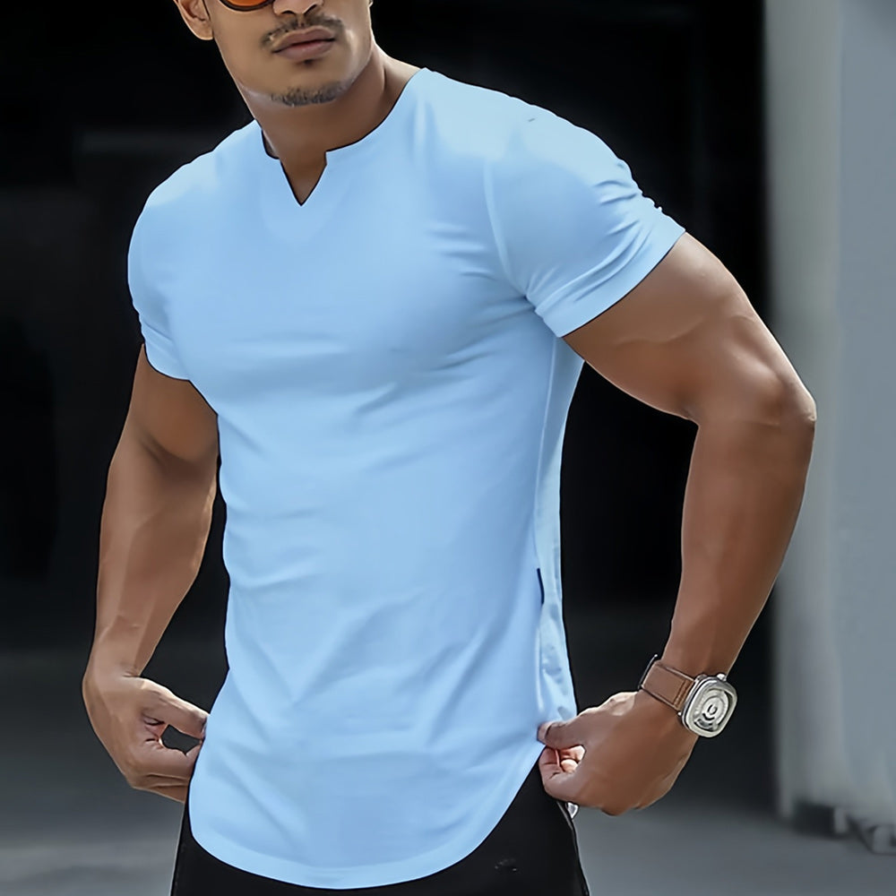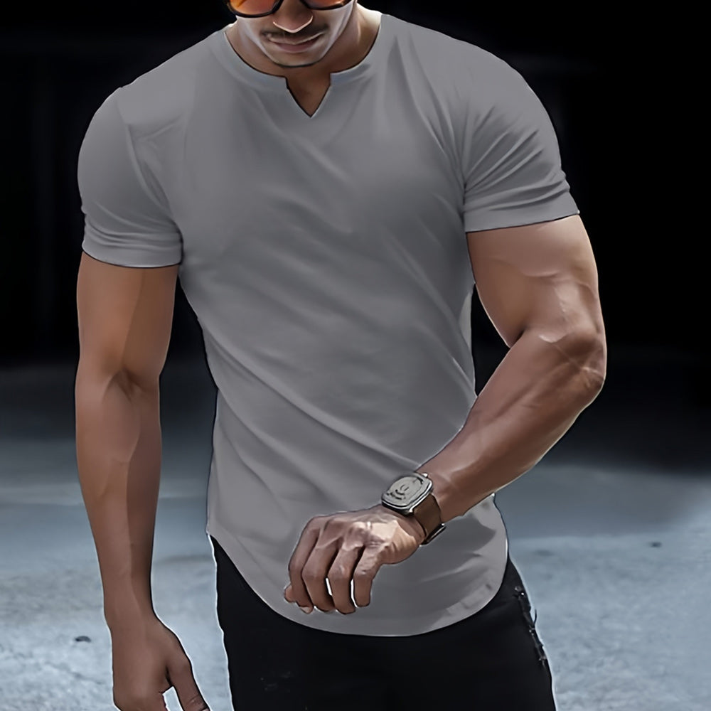 - 1 x Einfarbiges Slim-Fit-Kurzarmoberteil für Herren mit V-Ausschnitt