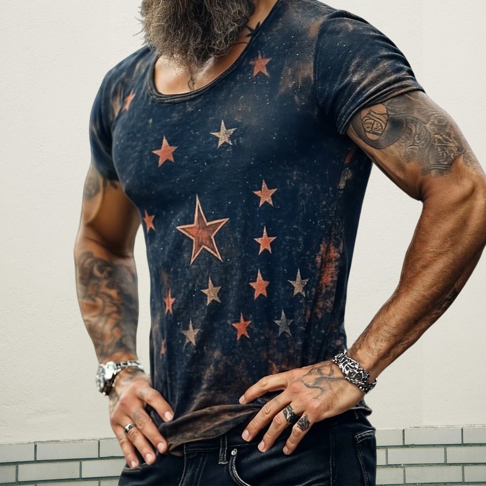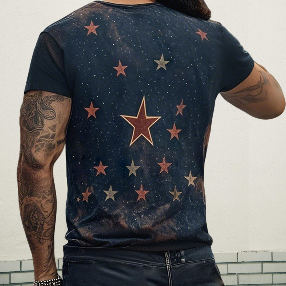 Das Herren Freizeit-T-Shirt mit Sternen-Universum-Print, Rundhalsausschnitt und Kurzarm ist ein unverzichtbares Teil für alle, die Vintage-Style lieben. Mit seinem auffälligen Print, bequemer Passform und vielseitigem Design verleiht es jedem Outfit das gewisse Etwas. Ob zu Hause, draußen oder mit Freunden – dieses T-Shirt setzt garantiert ein Statement.