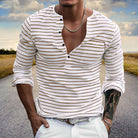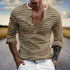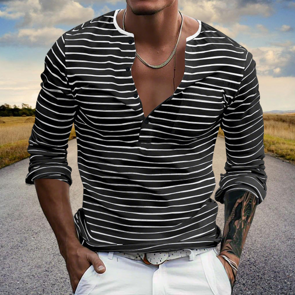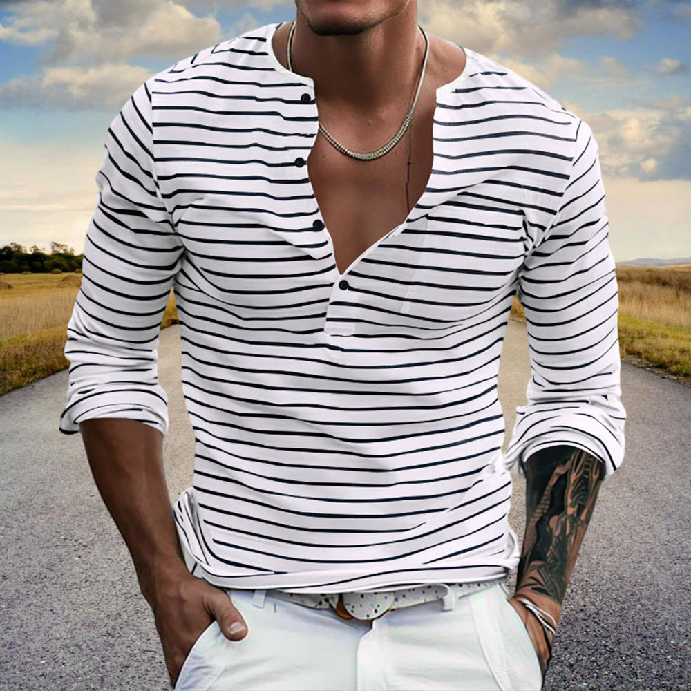 Herren gestreiftes Langarm-T-Shirt im Henley-Stil – eine zeitlose Kombination aus Komfort, Haltbarkeit und Stil, konzipiert für die alltäglichen Abenteuer des modernen Mannes.
