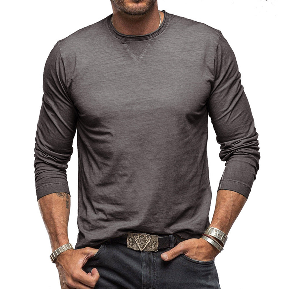 Herren Langarm-T-Shirt mit Rundhalsausschnitt und Uni-Farbe