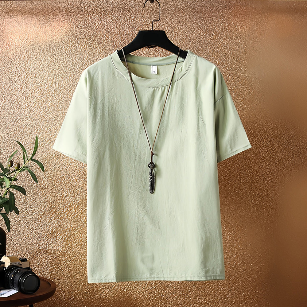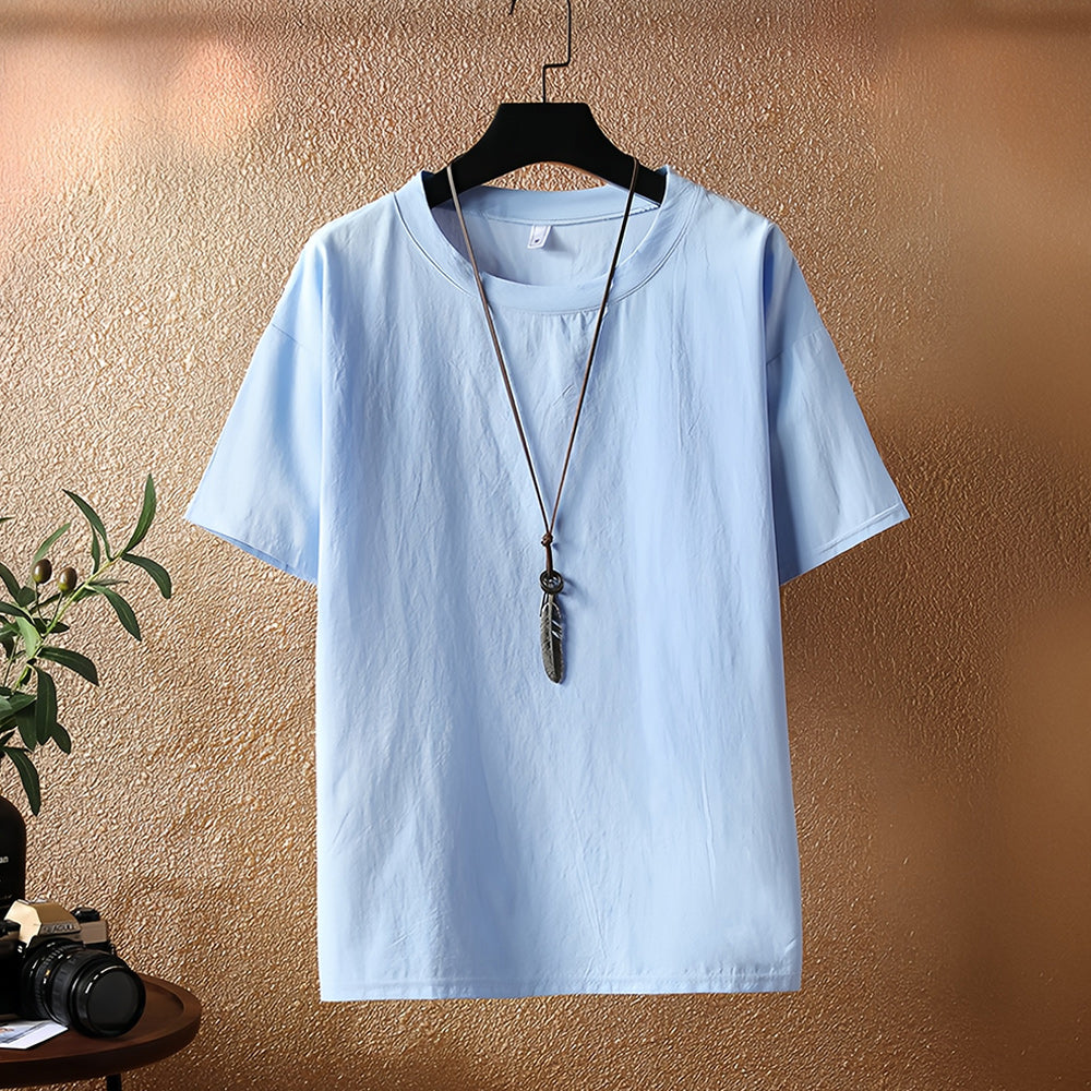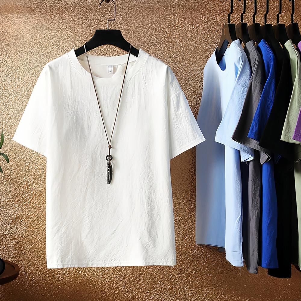 - 1 x Sommerlich cooles, lockeres Leinen-T-Shirt für Herren