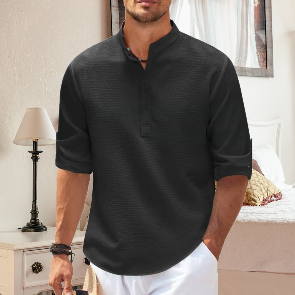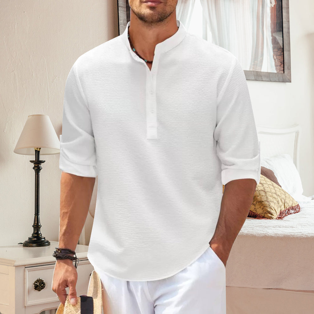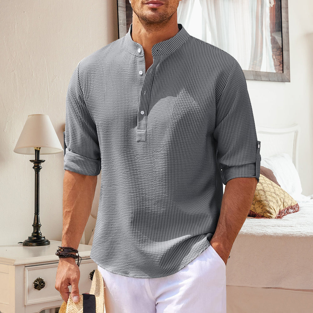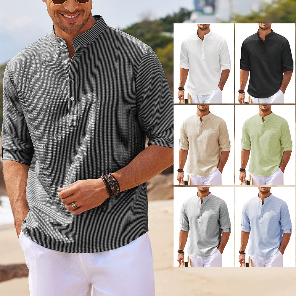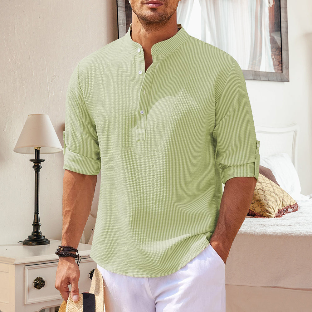 - 1 x Ananas-kariertes, Langärmliges Herren-Freizeithemd mit Stehkragen