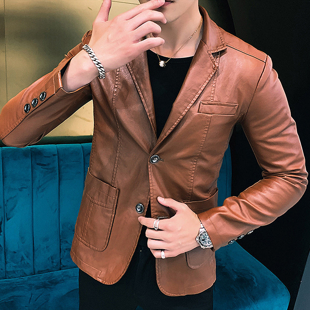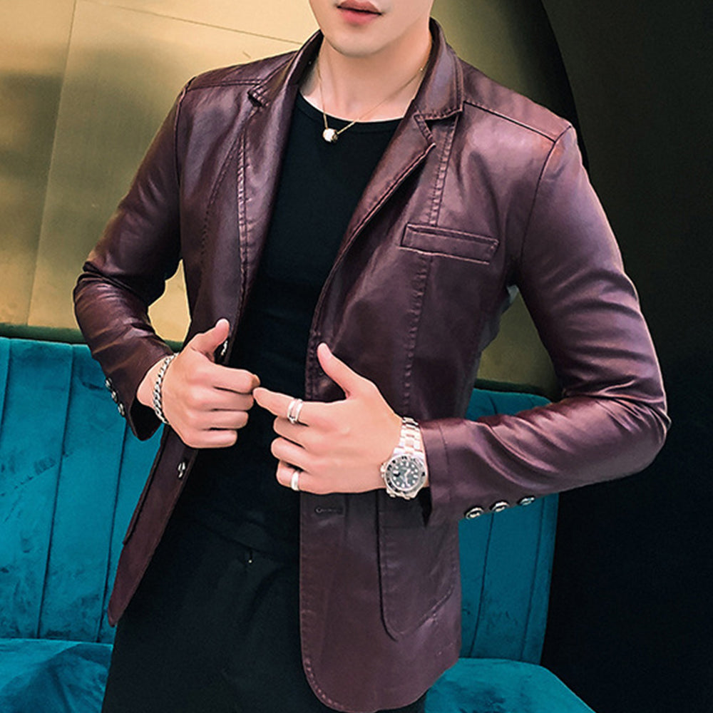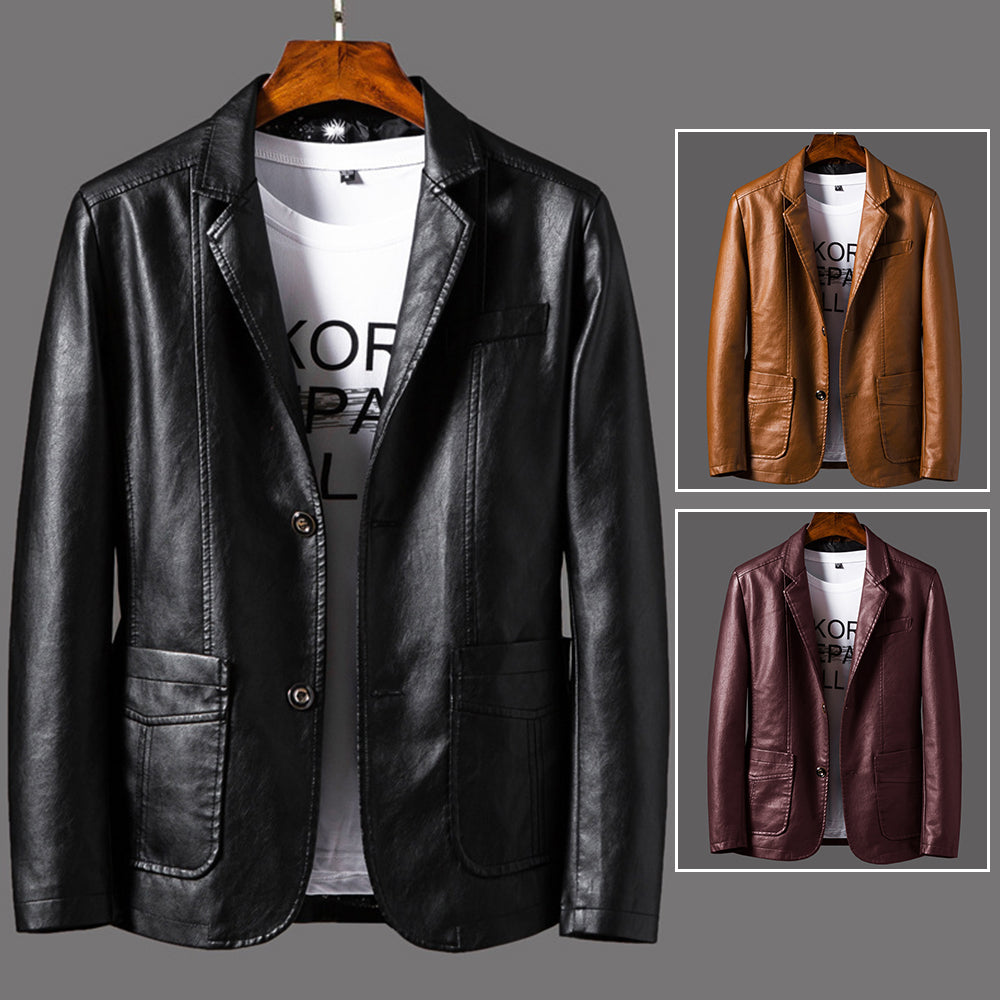 - 1 x Frühling Und Herbst Herren Casual PU Leder Slim Motorradanzugjacke