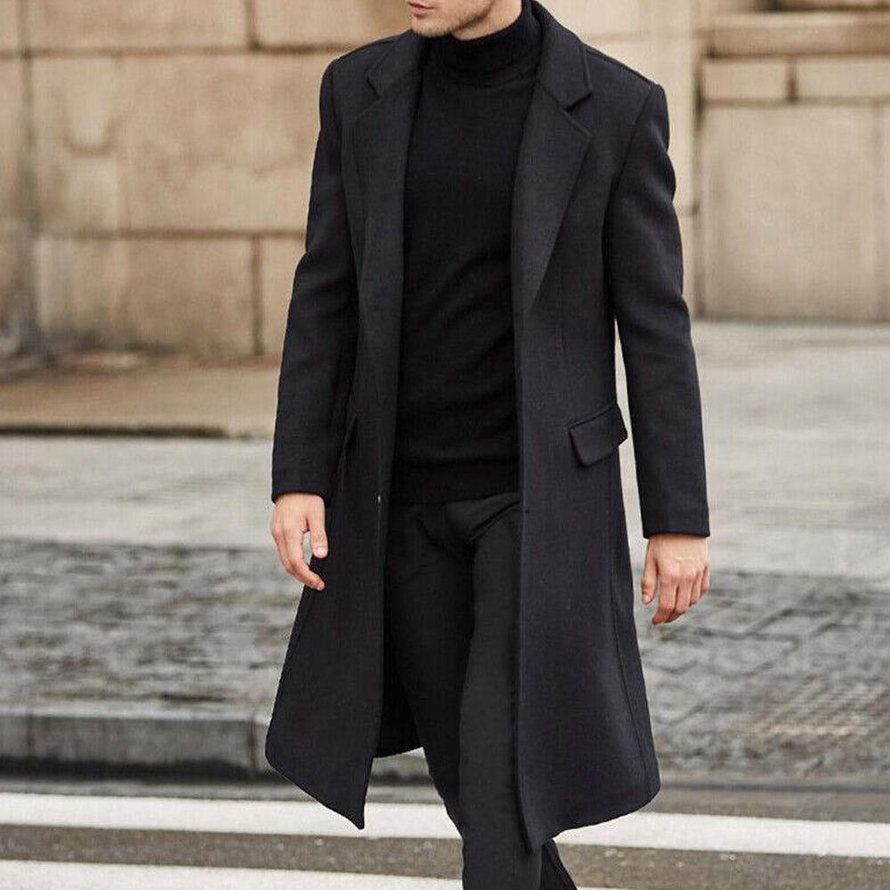 - 1 x Langer, Einfarbiger Mantel Für Britische Herrenmode Im Herbst Und Winter