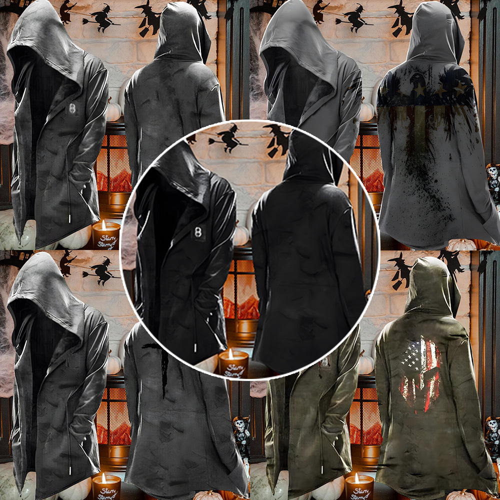 • 1 x Umhang Im Neuen Stil, Einfache Lässige Kapuzen-Kordelzug-Halloween-Herren Jacke