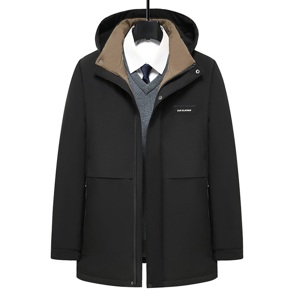 - 1 x Winter Herren Verdickte Und Warme Business-Casual-Daunenjacke Mittellange Baumwolljacke