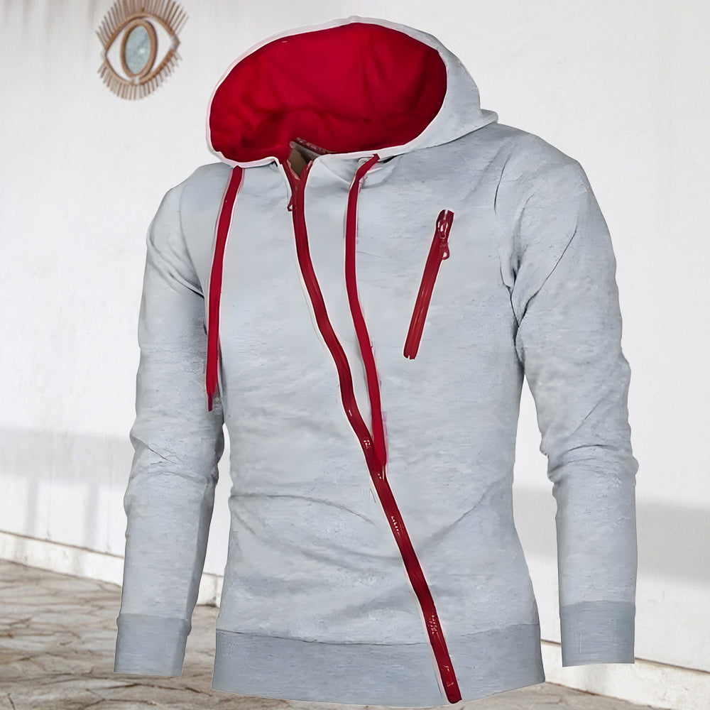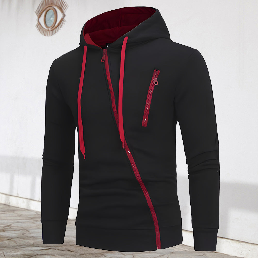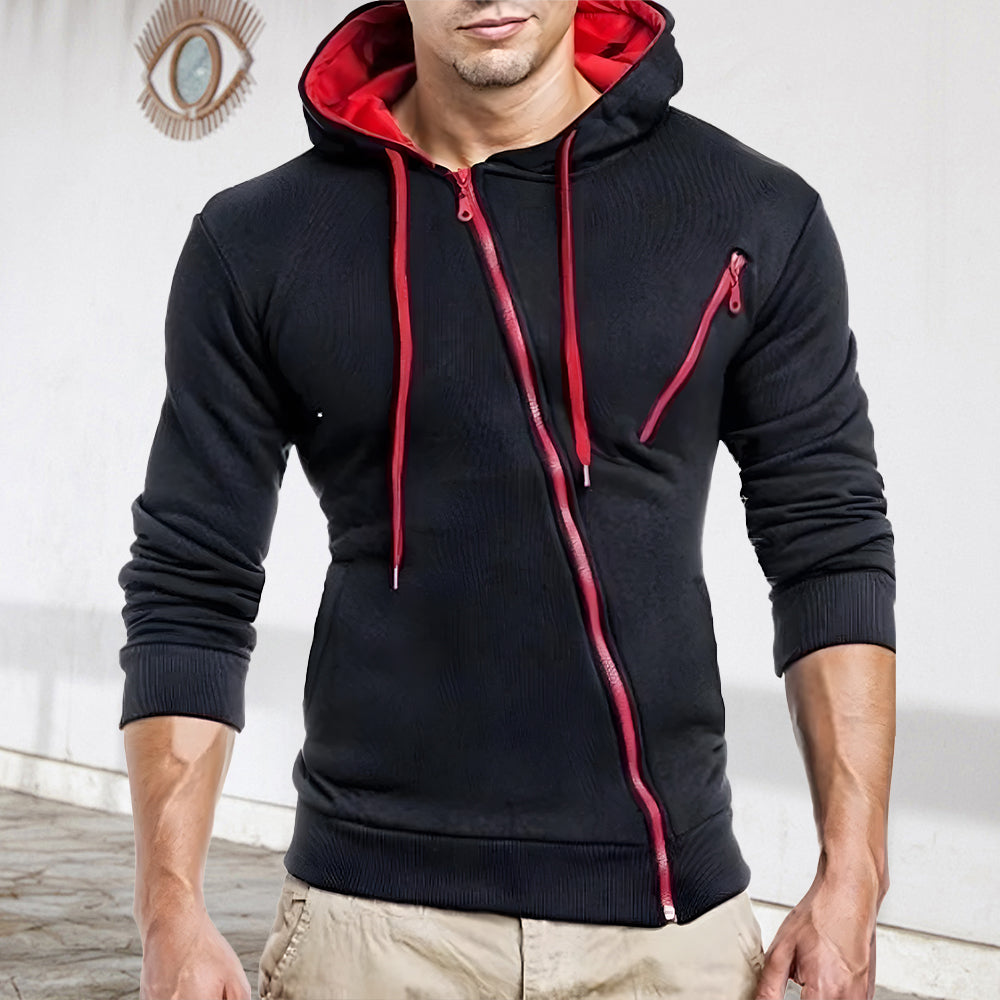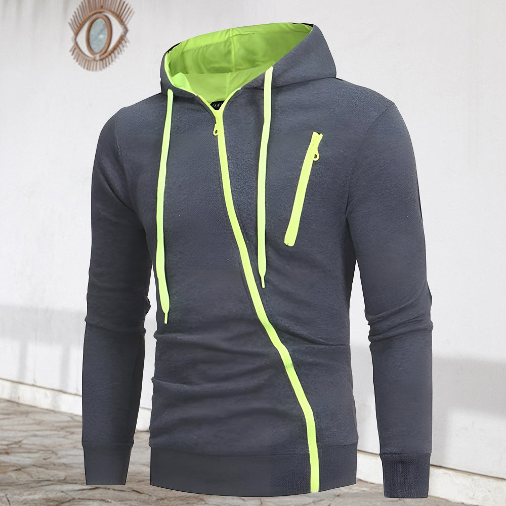 Neues Sportliches, Lässiges Herren-Sweatshirt Mit Kapuze Und Langen ärmeln Und Diagonalem Reißverschluss