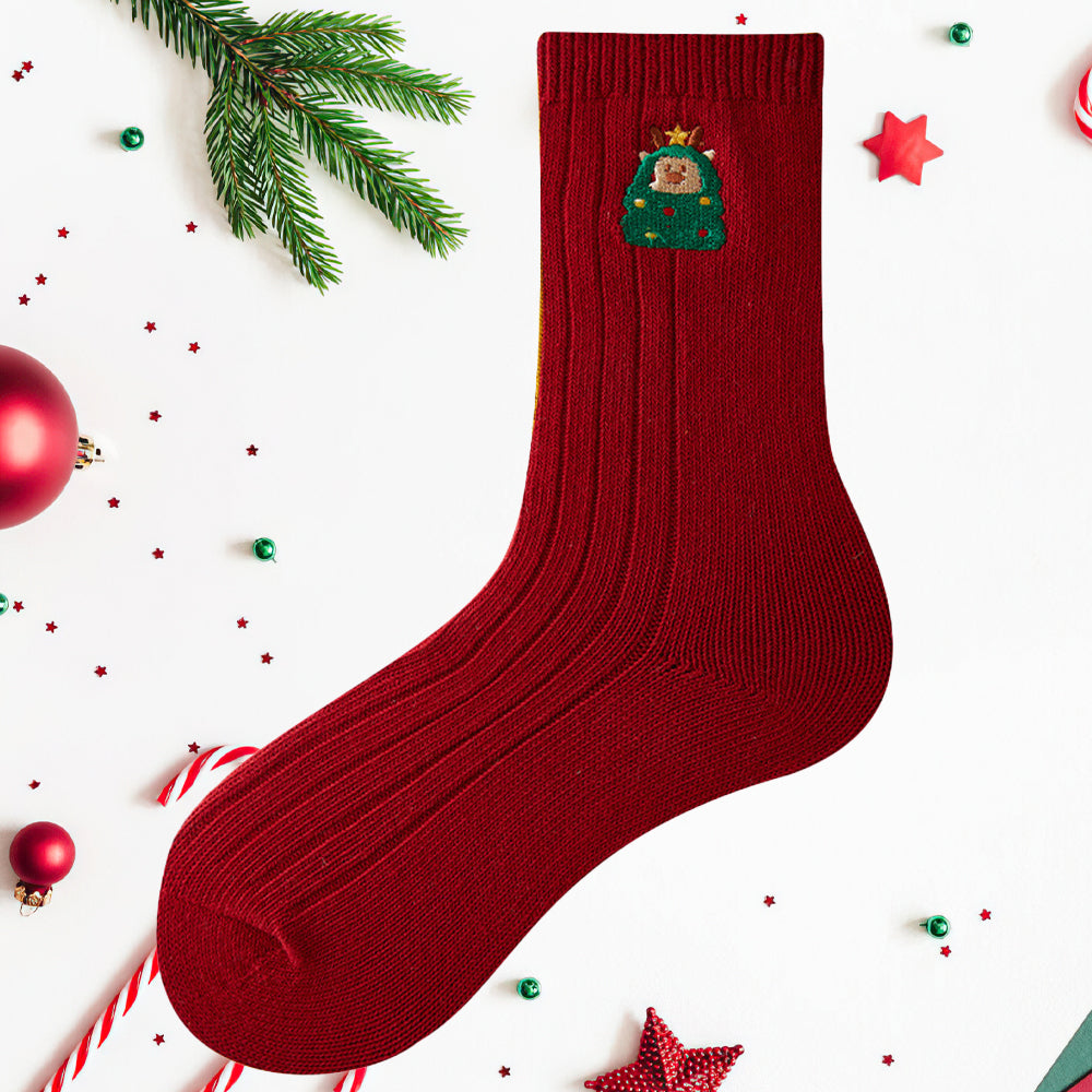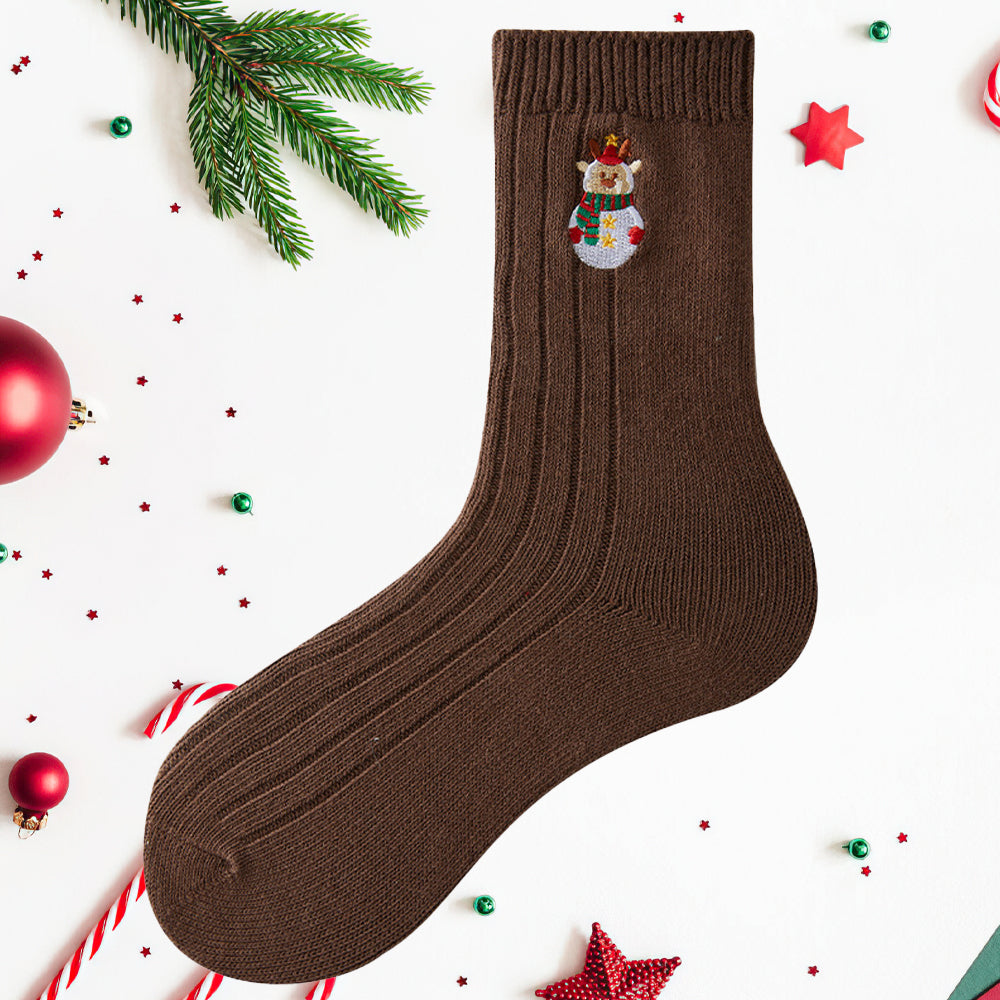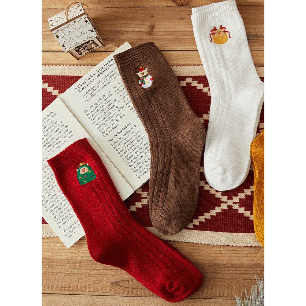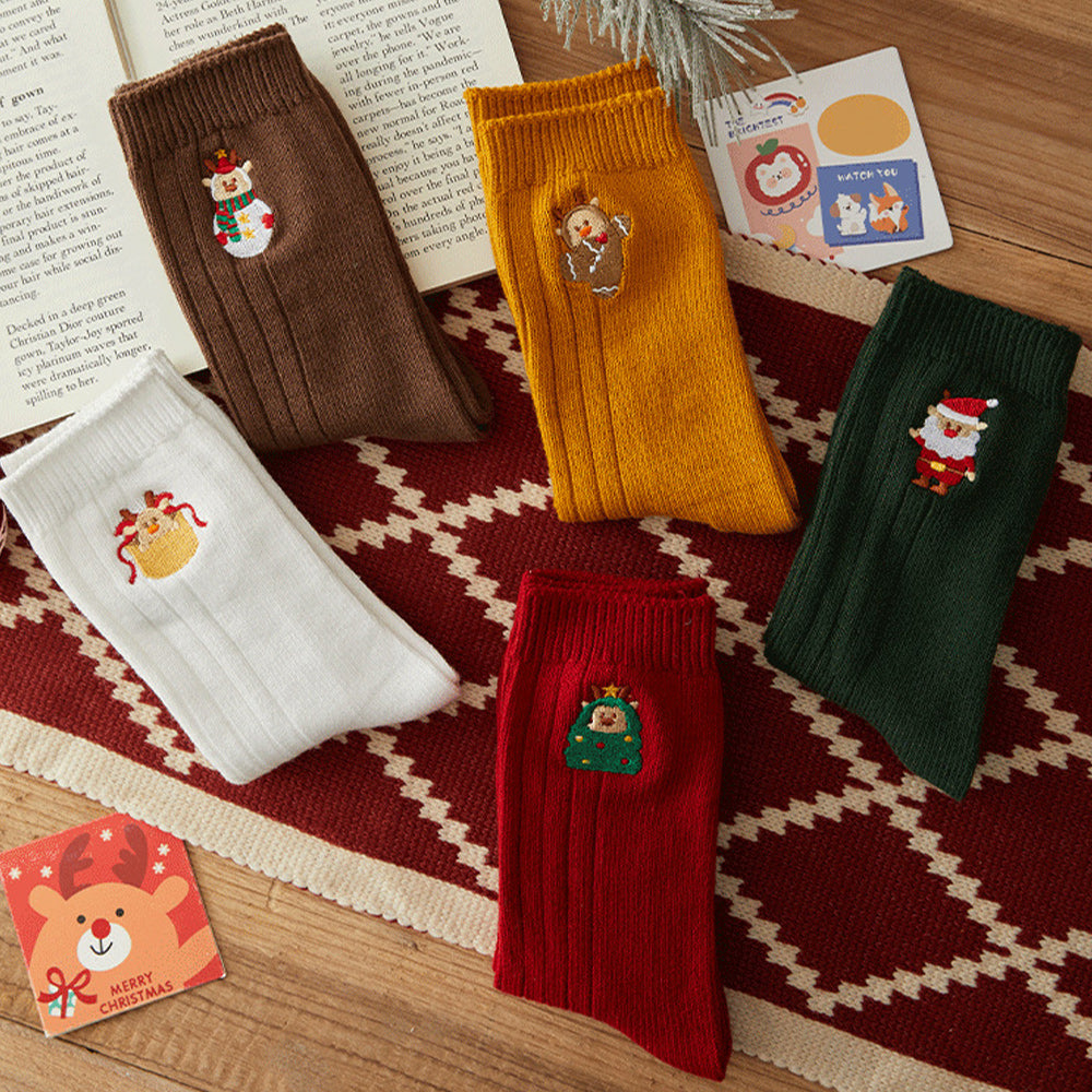 • 1/4 x Damen-Winter-Cartoon-Stickerei-Doppelnadel-Weihnachtssocken in Der Wadenmitte