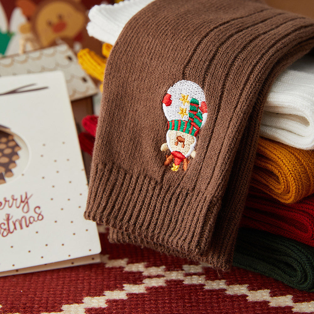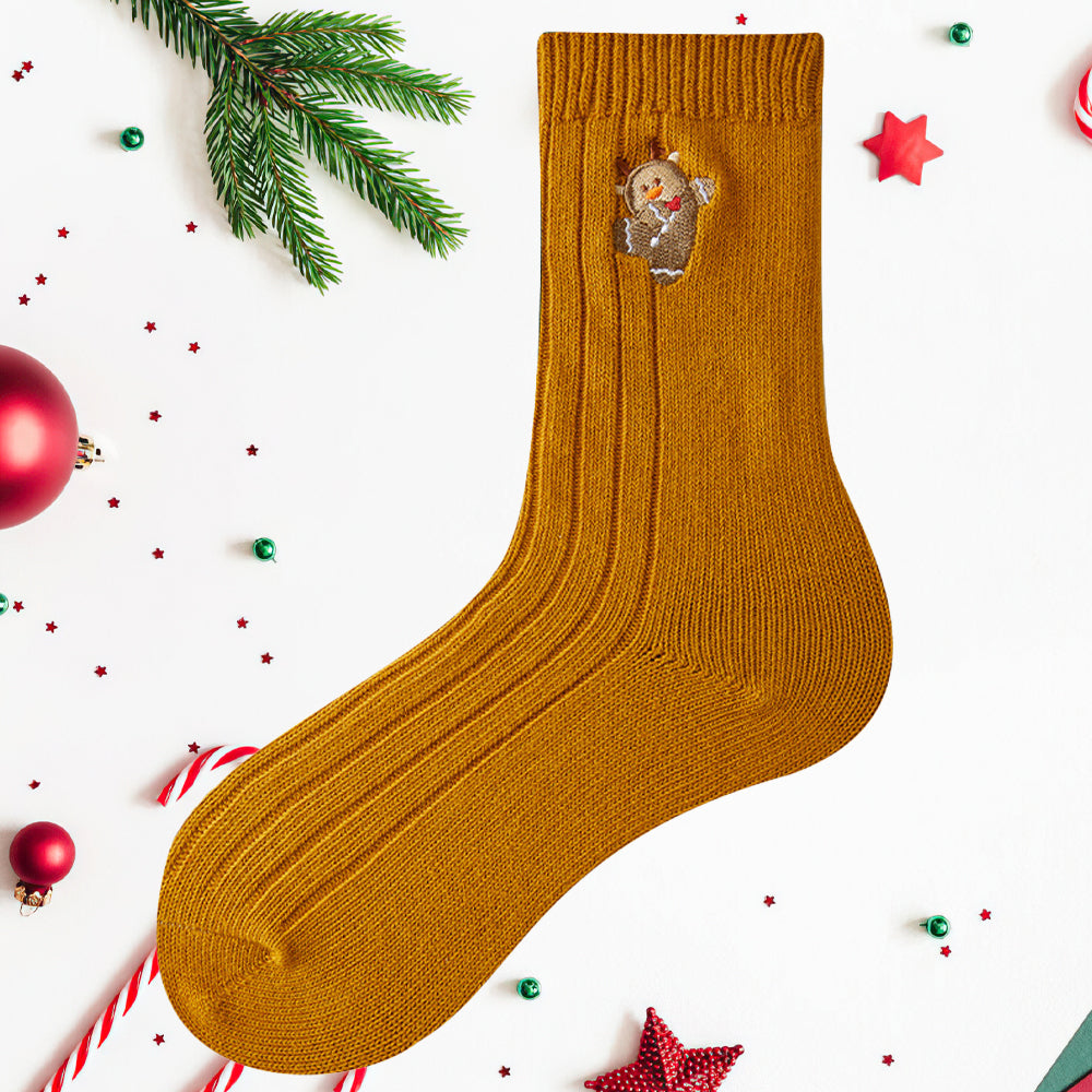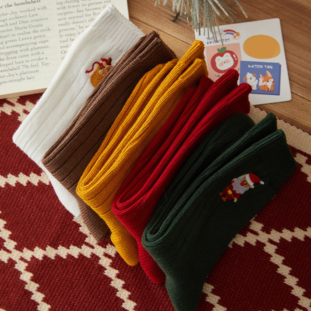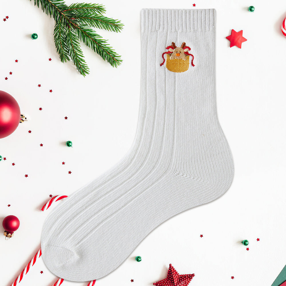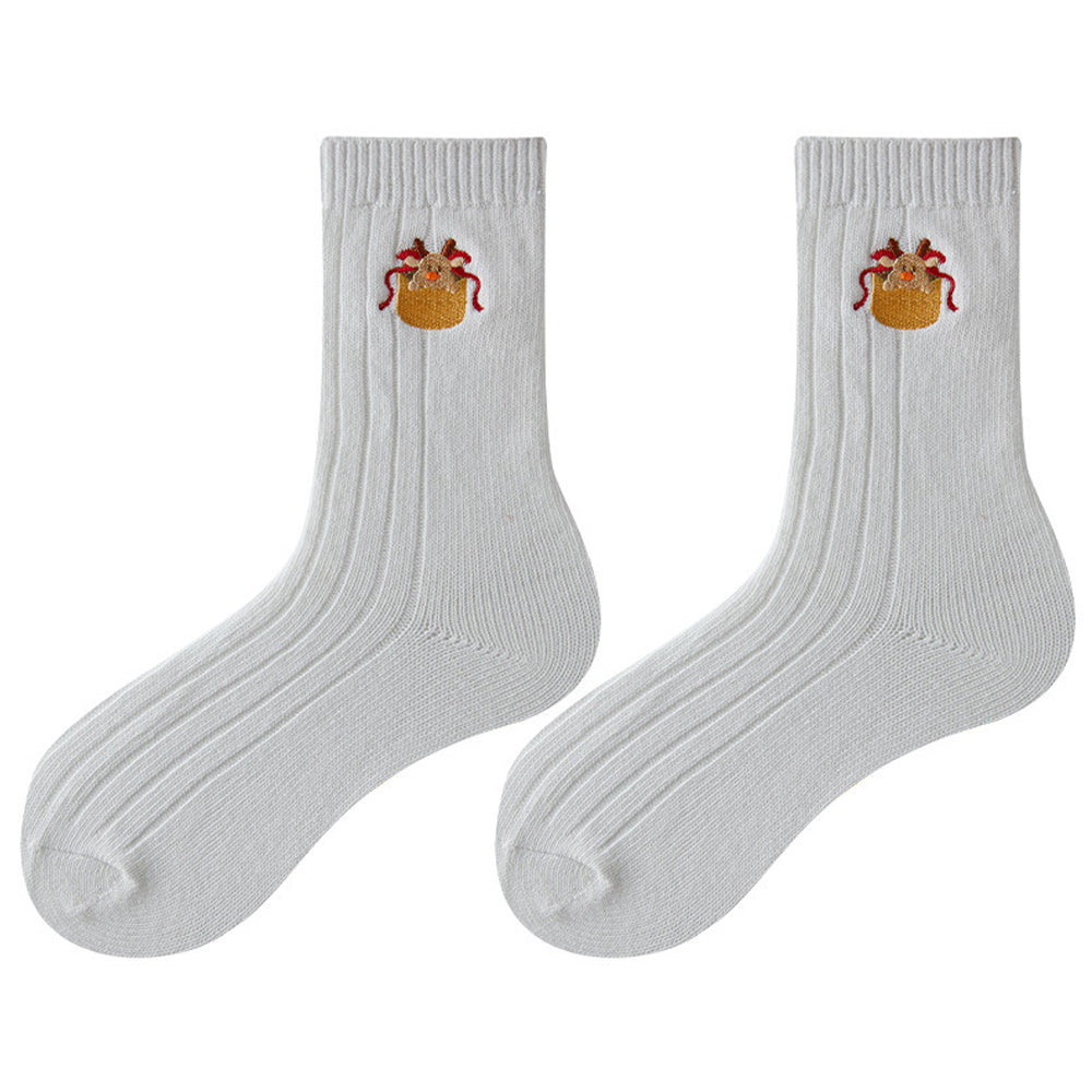 • 1/4 x Damen-Winter-Cartoon-Stickerei-Doppelnadel-Weihnachtssocken in Der Wadenmitte