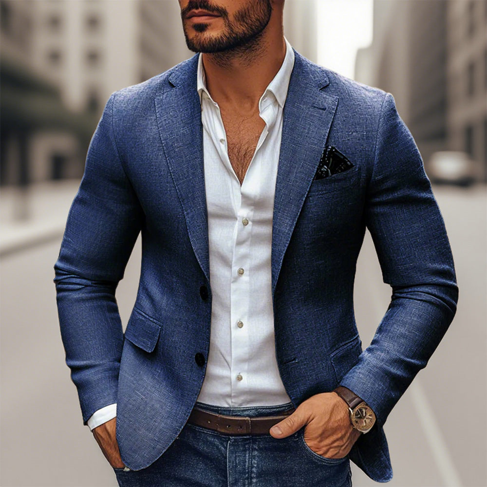 Ob über einem T-Shirt für einen lässigen Look oder kombiniert mit einem Hemd für ein eleganteres Outfit – das Herren Freizeit-Sakko mit Zwei-Knopf-Verschluss und fallendem Revers ist ein unverzichtbares Essential für die moderne Herrengarderobe.