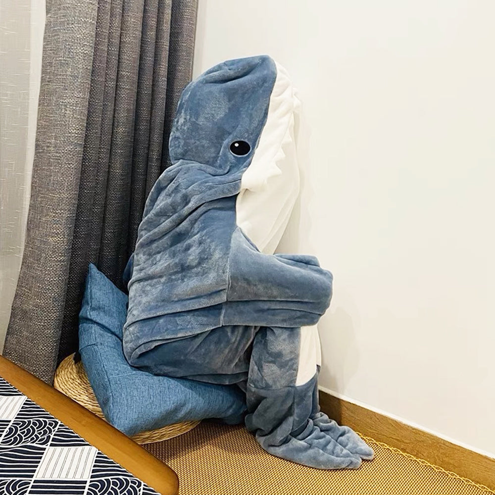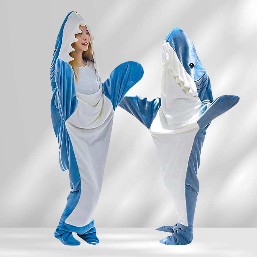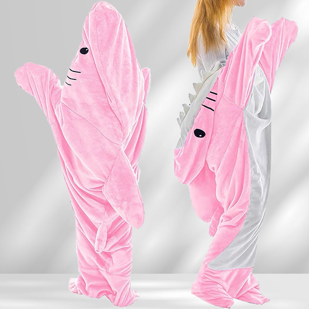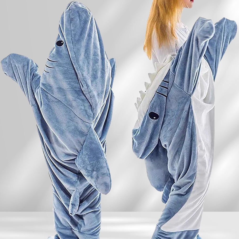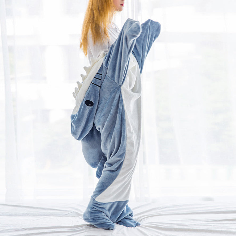 - 1 x Erwachsener Kapuzenpullover Aus Flanell, Lockerer, Einteiliger Hai-Pyjama