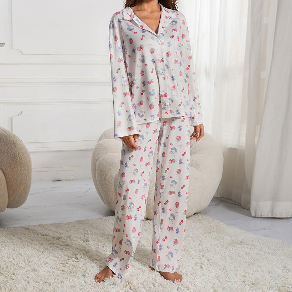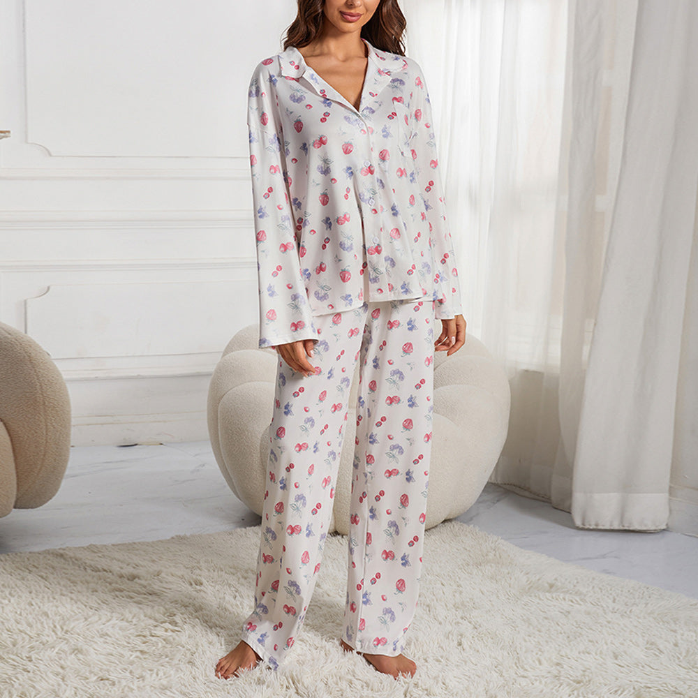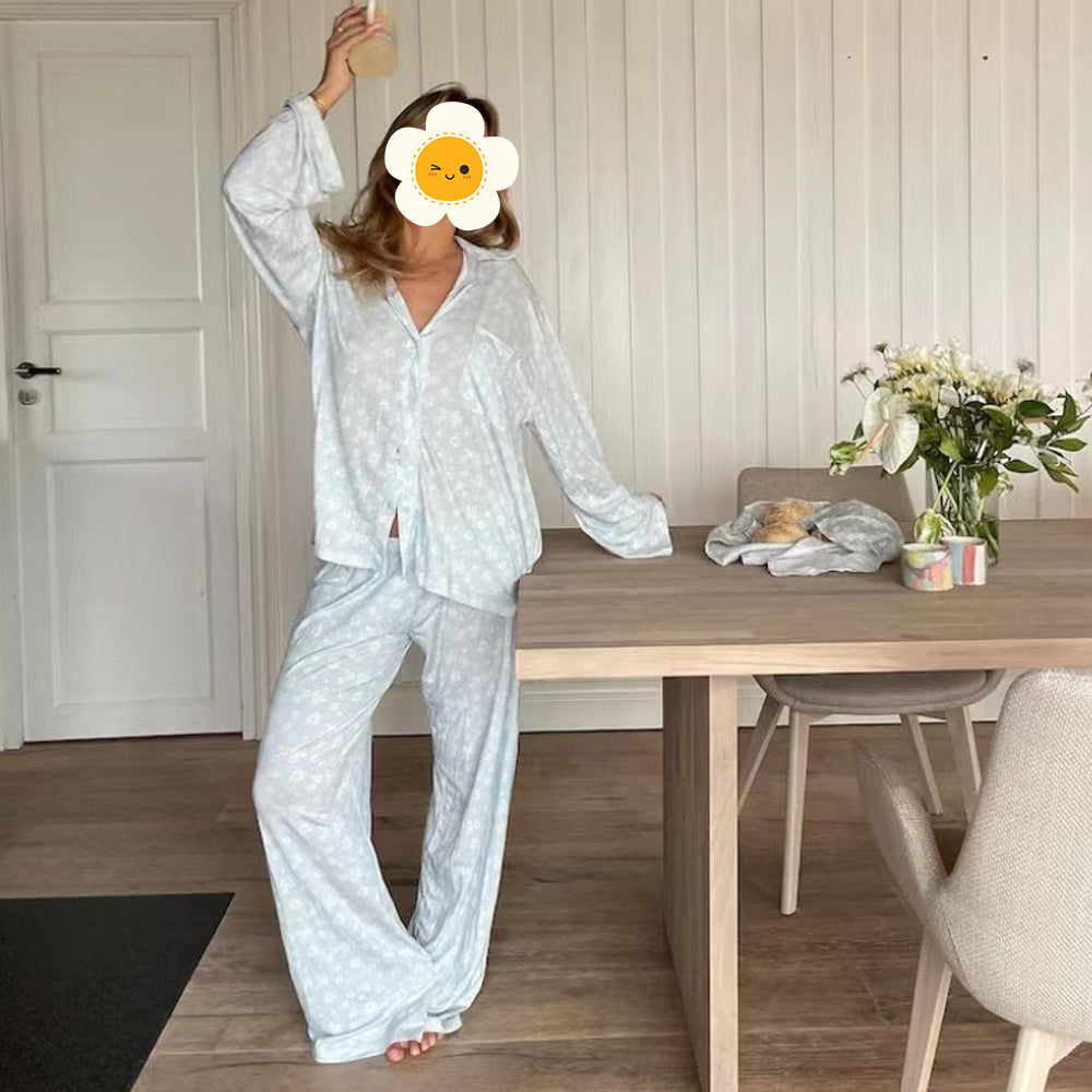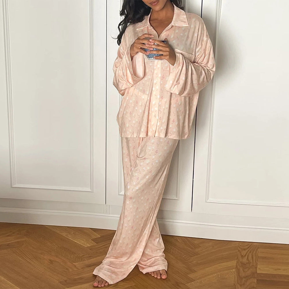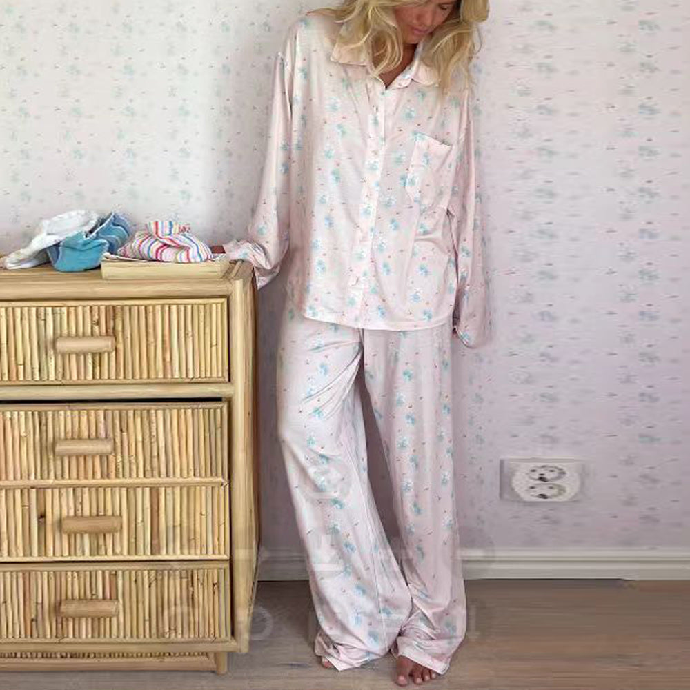 Langärmliger, Bedruckter, Geschlitzter, Lockerer Anzug Für Damen Zu Hause