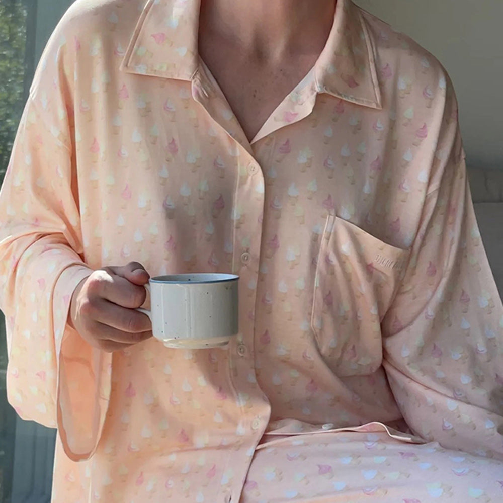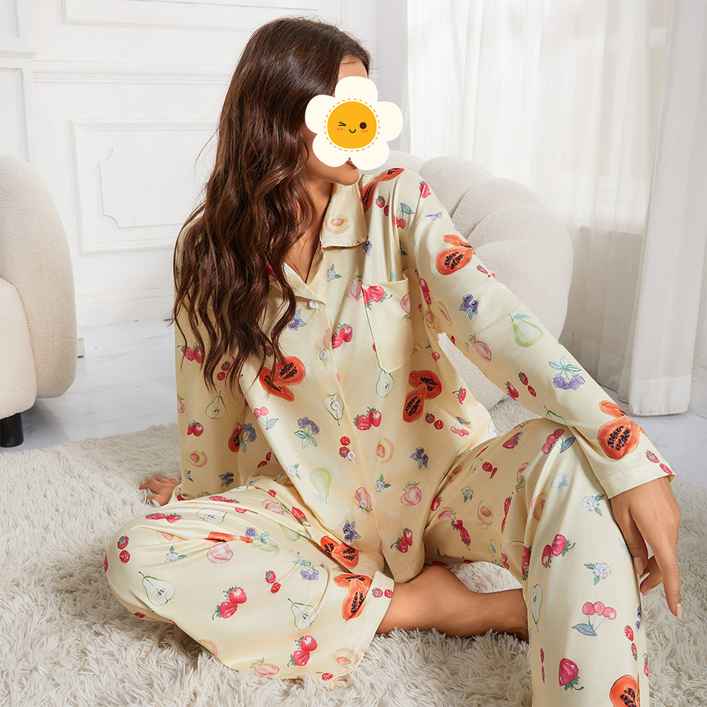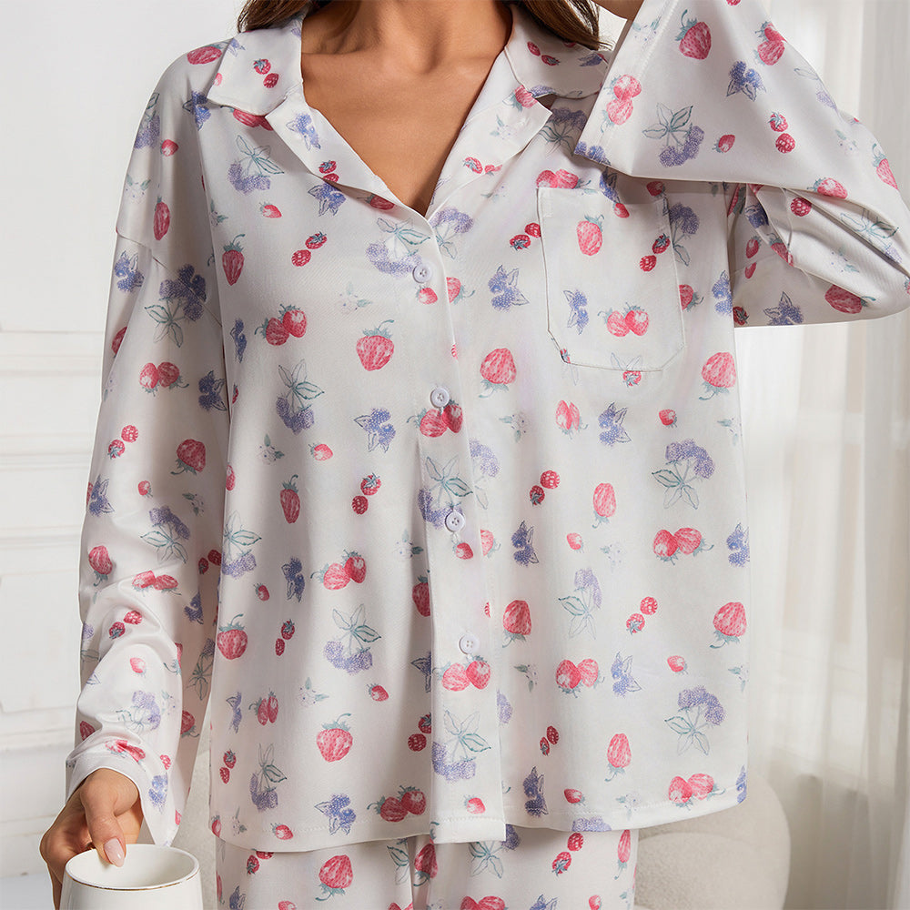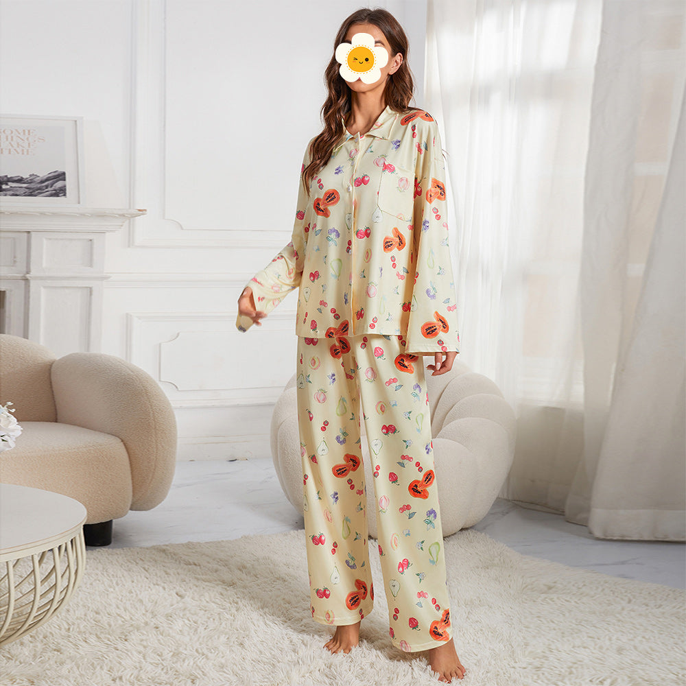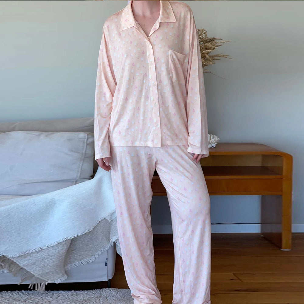 Langärmliger, Bedruckter, Geschlitzter, Lockerer Anzug Für Damen Zu Hause