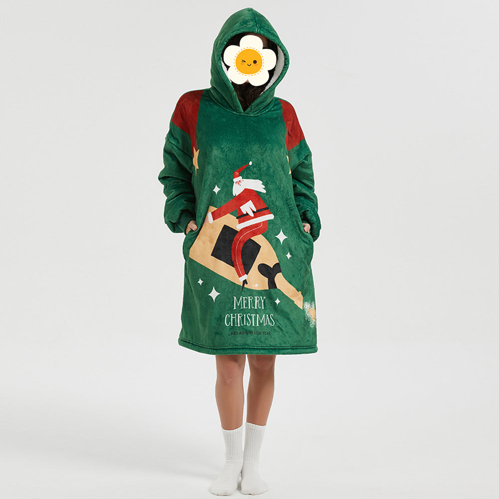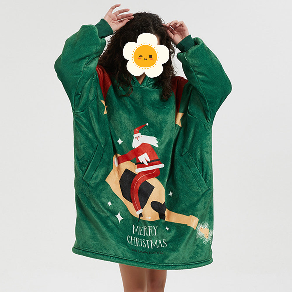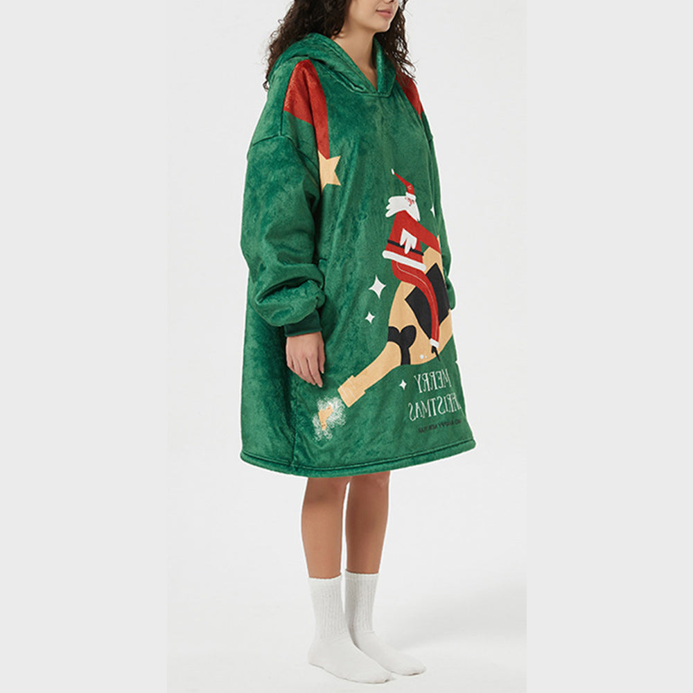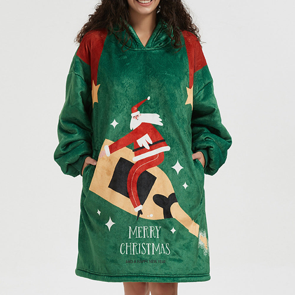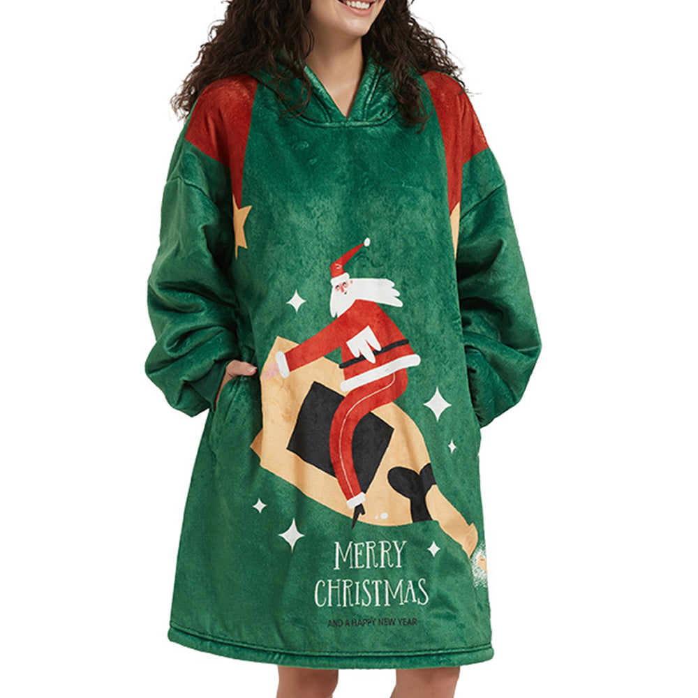 - 1 x Weihnachten Neues Faules Nachthemd Mit Bedruckter, Lockerer, Großer Taschen-Hauskleidung