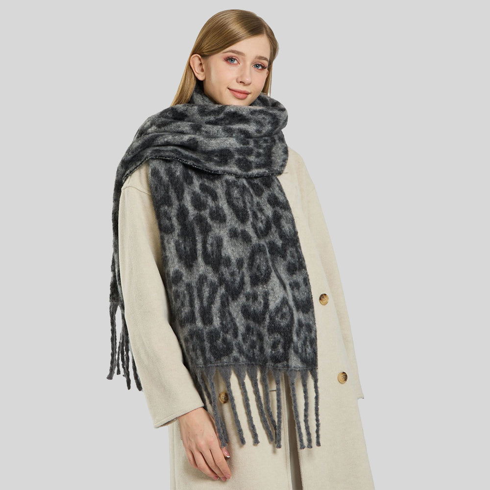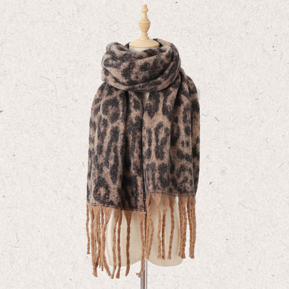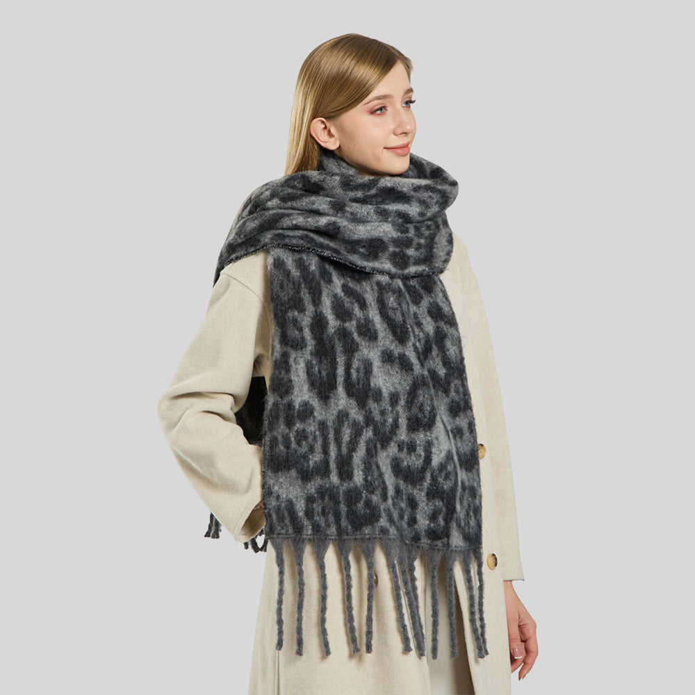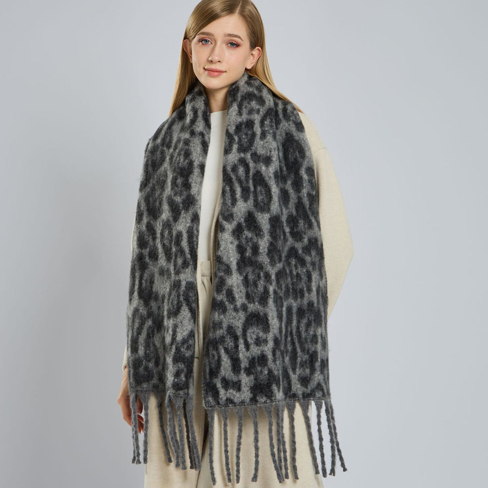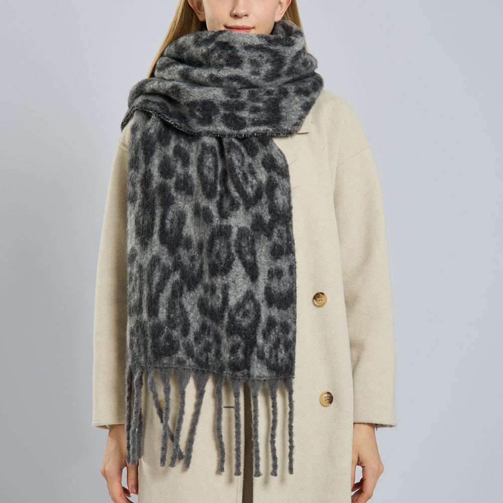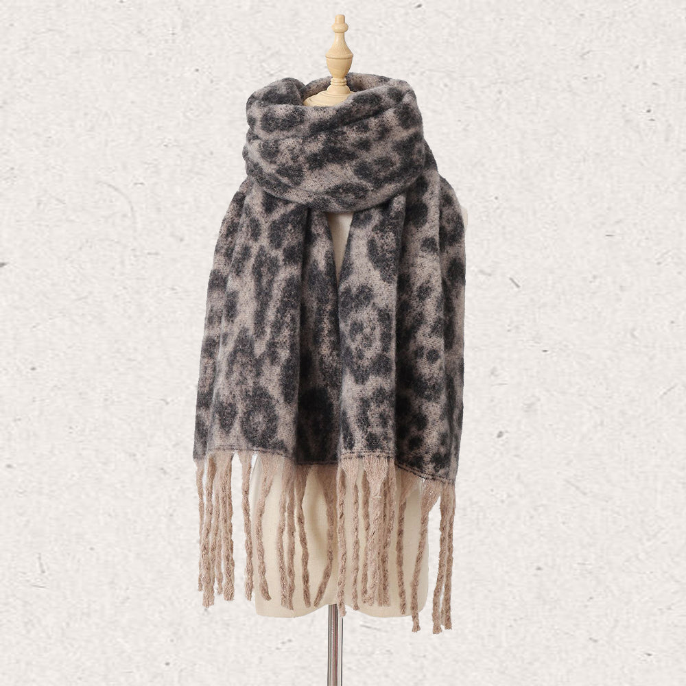 Herbst und Winter Retro Leopardenmuster Quaste verdickter warmer Schal