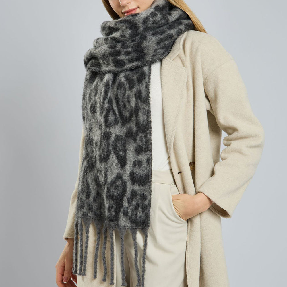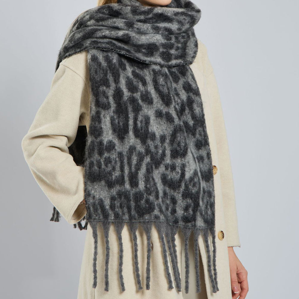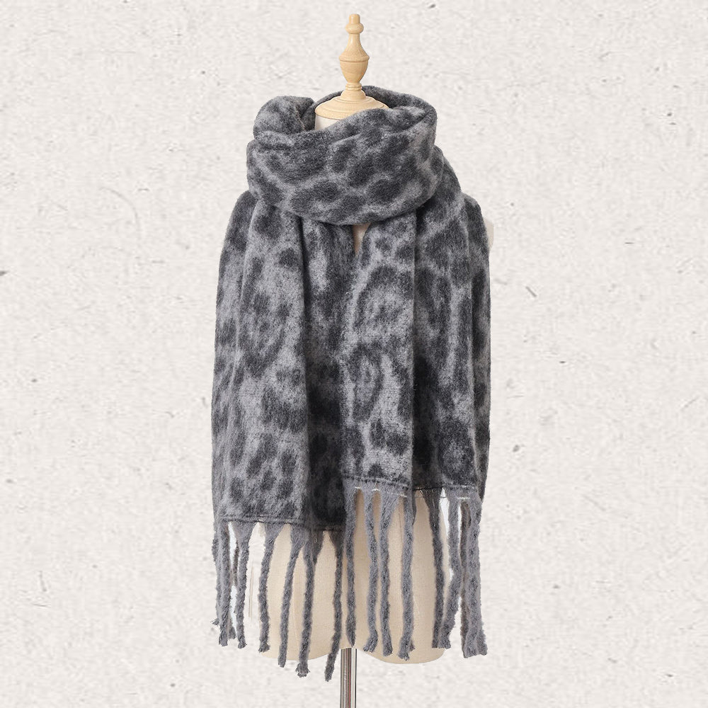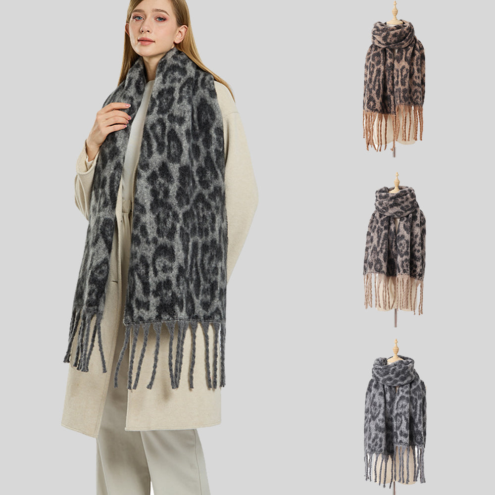 - 1 x Herbst und Winter Retro Leopardenmuster Quaste verdickter warmer Schal