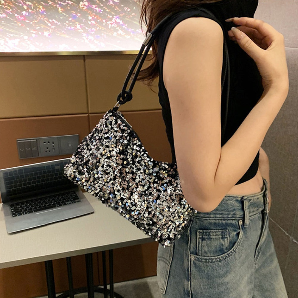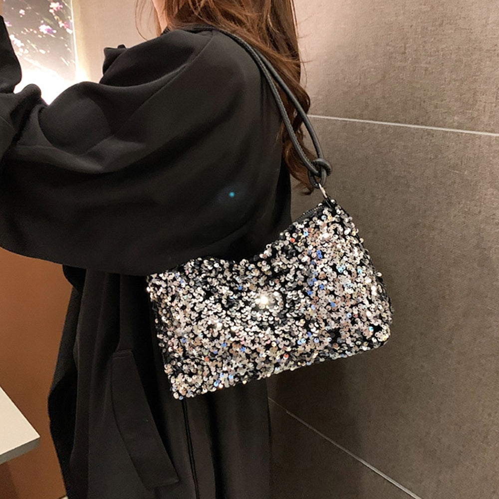 🍂🌼Stoff: Hergestellt aus hochwertigem PU-Leder mit Pailletten, langlebig und luxuriös.Die Außenseite der Tasche ist mit funkelnden Pailletten verziert, die jedem Outfit einen Hauch von Eleganz und Glamour verleihen.
