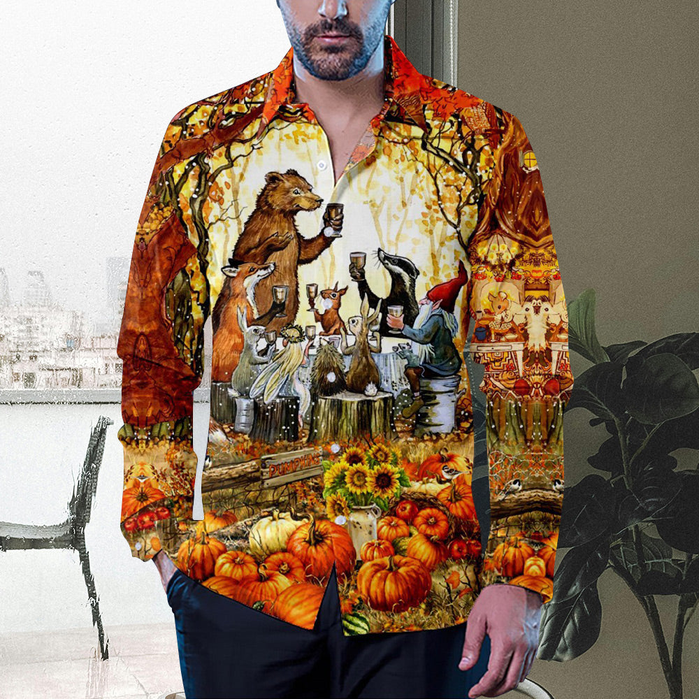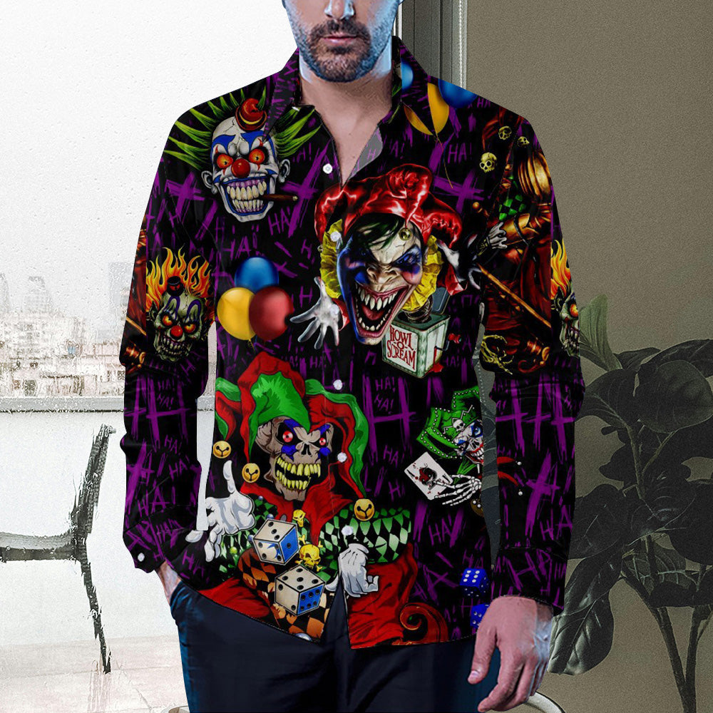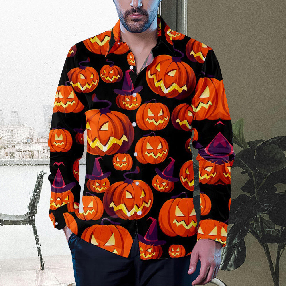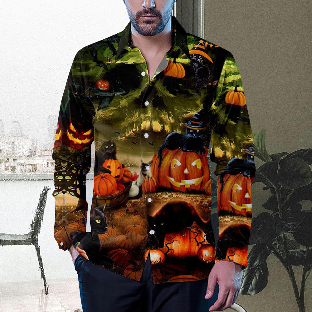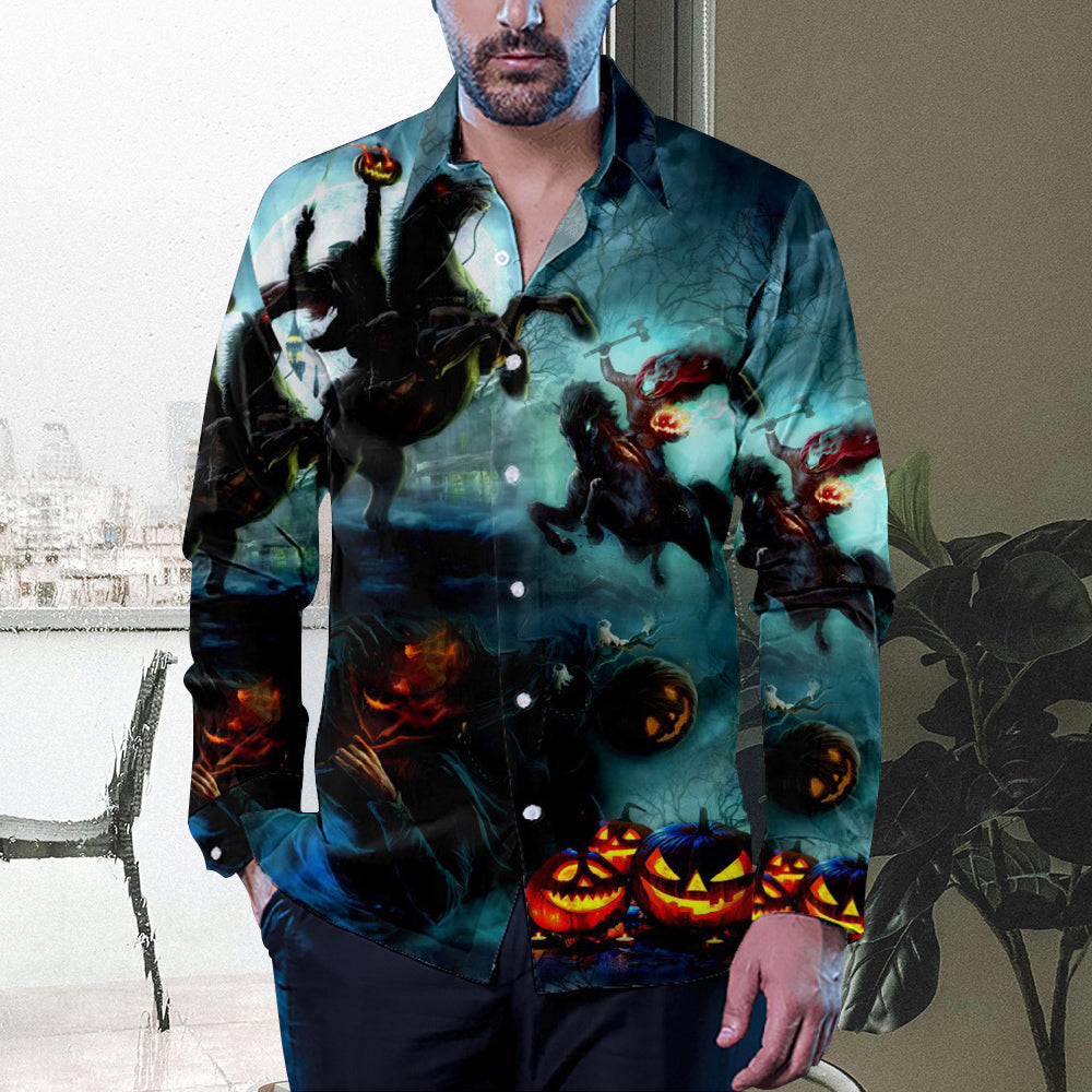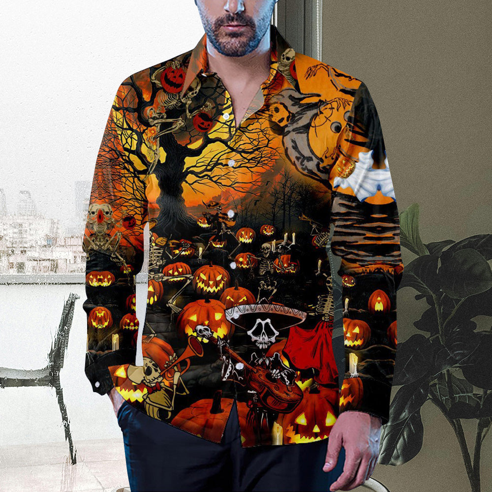 - 1 x Halloween-Serie 3D-Gedrucktes, Lässiges Revers-Langarmhemd für Herren