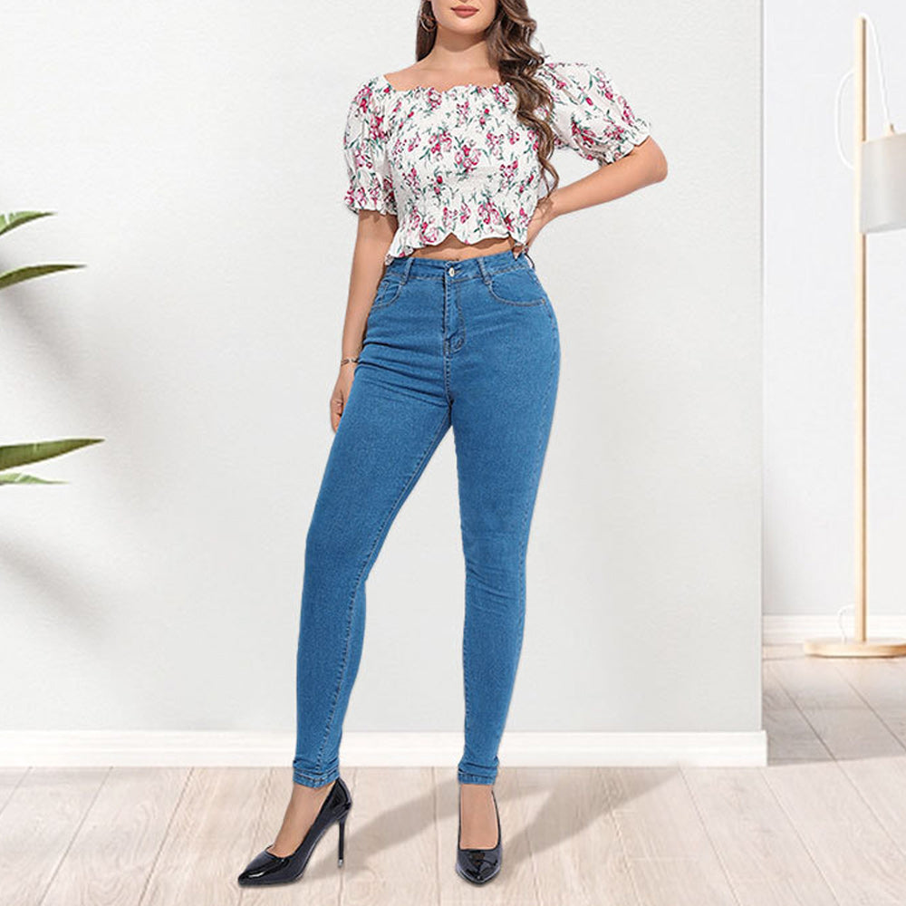 - 1 x Damen-Jeans Mit Hoher Taille, Schlankmachend, Hochelastisch, Po-Lifting, Röhrenjeans