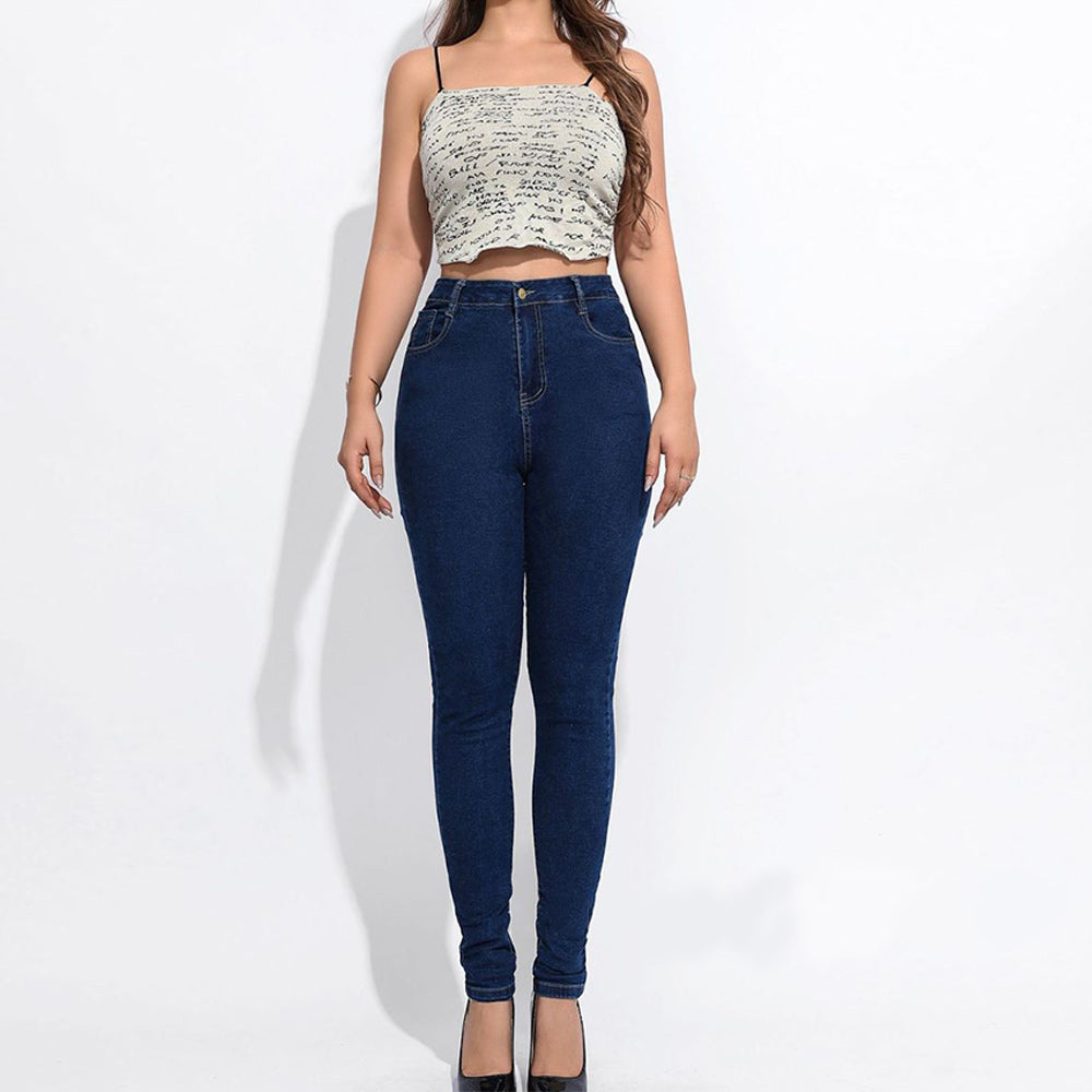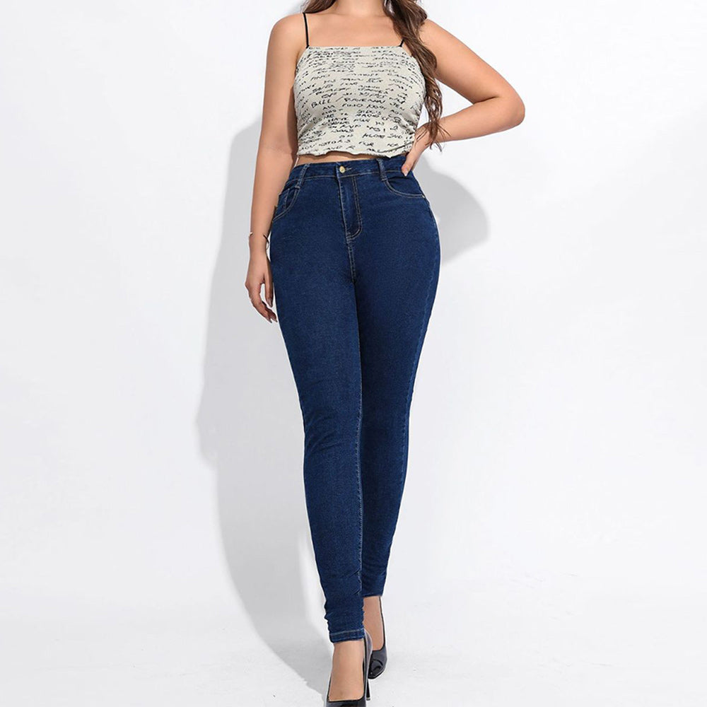 Damen-Jeans Mit Hoher Taille, Schlankmachend, Hochelastisch, Po-Lifting, Röhrenjeans