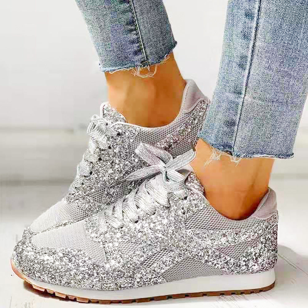 Brillante Lässige Atmungsaktive Damen-Sneaker Mit Pailletten